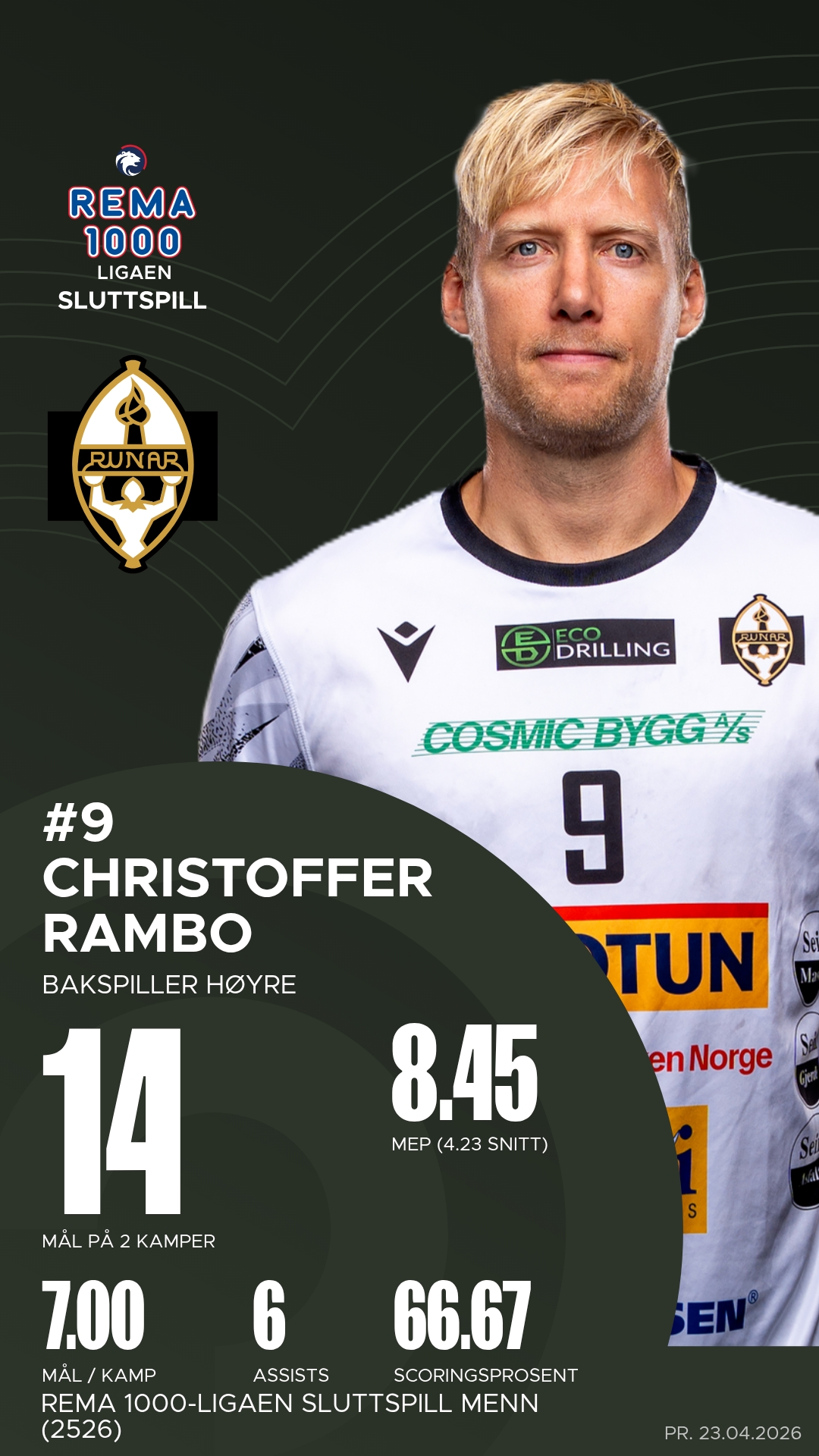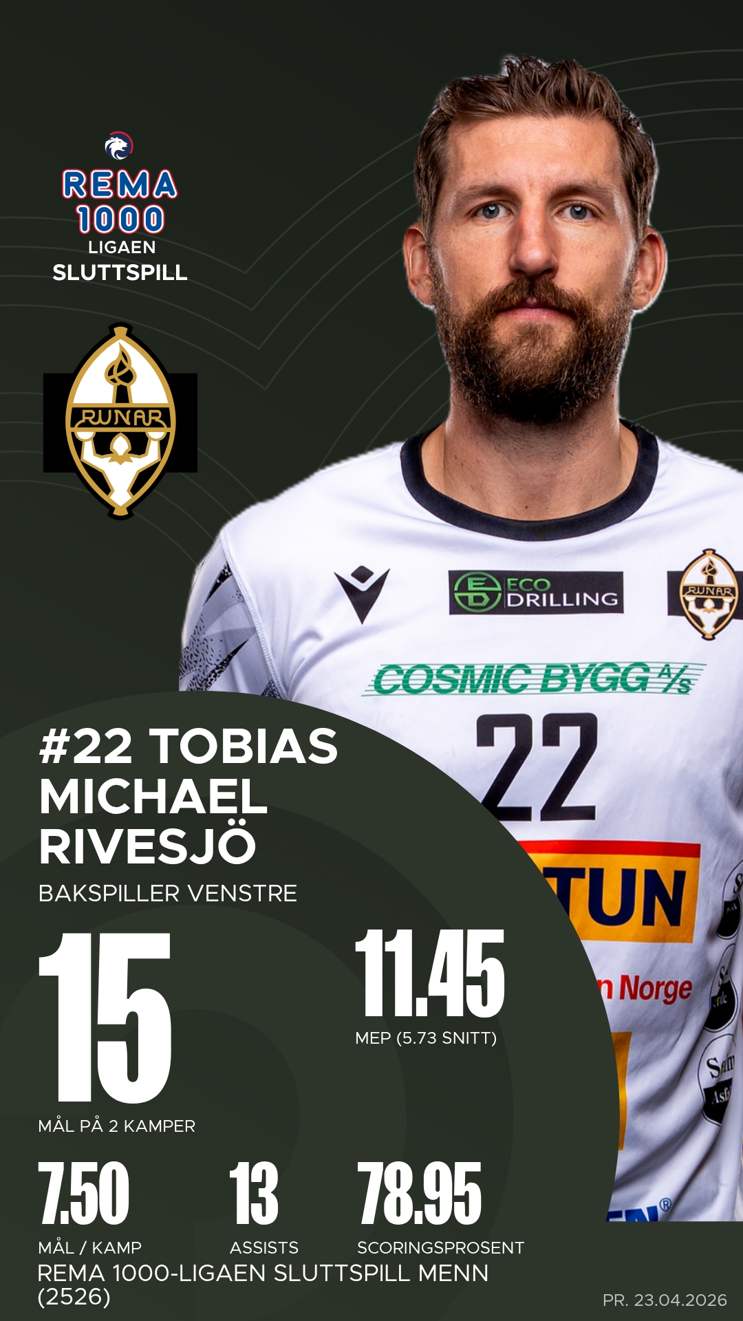 Hos Runar Håndball Elite er det særlig Tobias Michael Rivesjö som har vært lagets store drivkraft. Den svenske bakspilleren har vært en avgjørende bidragsyter med både mål og assists, og er en konstant trussel mot ethvert forsvar. Christoffer Rambo har også vært sentral med sin rutine og sitt tunge skudd fra distanse, mens Tord Lea Knutsen har levert solid både i gjennombrudd og som tilrettelegger. I målet står Viktor Tofthøj Warrer klar til å stenge buret med sine refleksredninger og raske utkast som setter fart på Runars kontringsspill.
