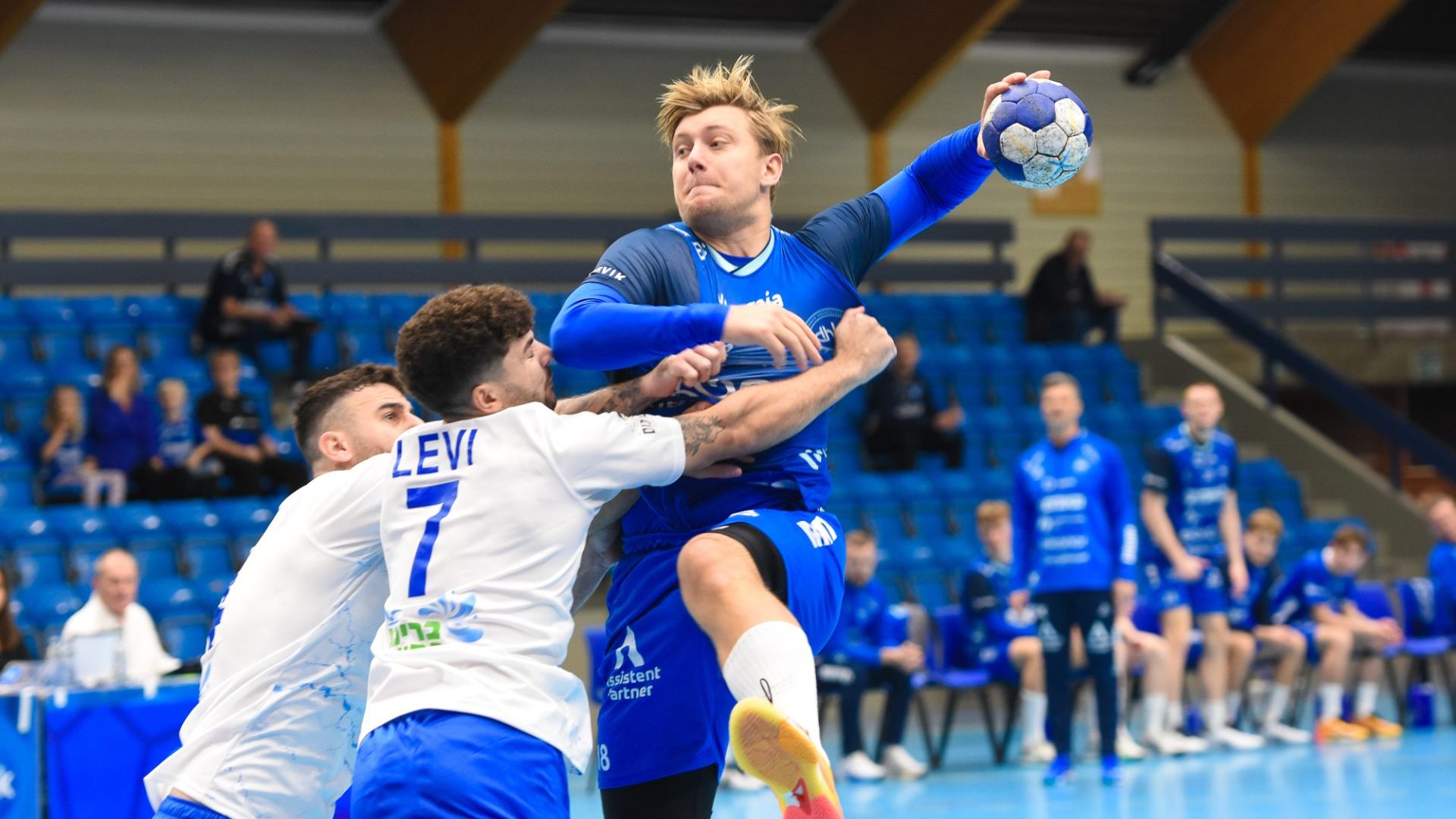 David Walstad Haugstvedt og de andre DHK-spillerne lot Holon Yumalims Or Rafael Levi få litt for stort spillerom lørdag. David scoret fem mål, men ble overgått av Levis ni.