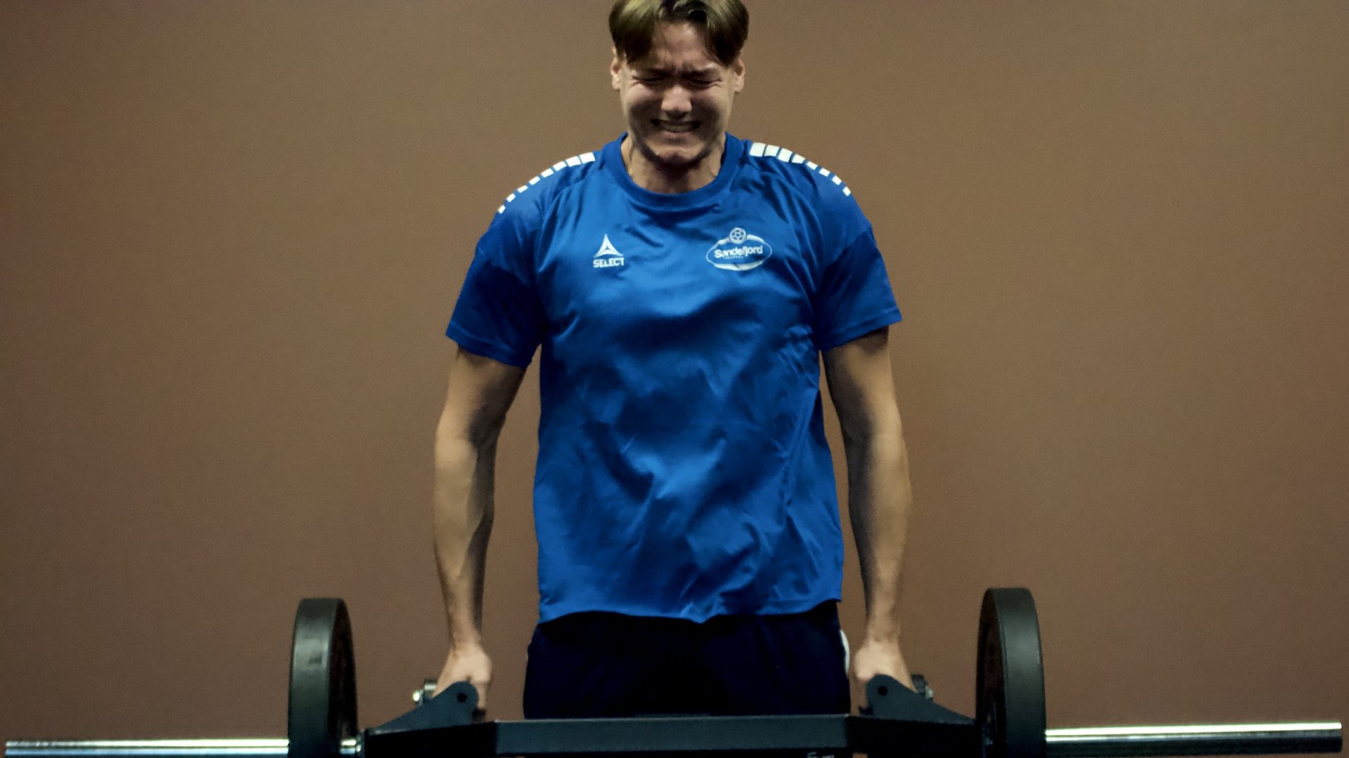 Mange og tunge løft for Felix Lunde på styrkerommet.