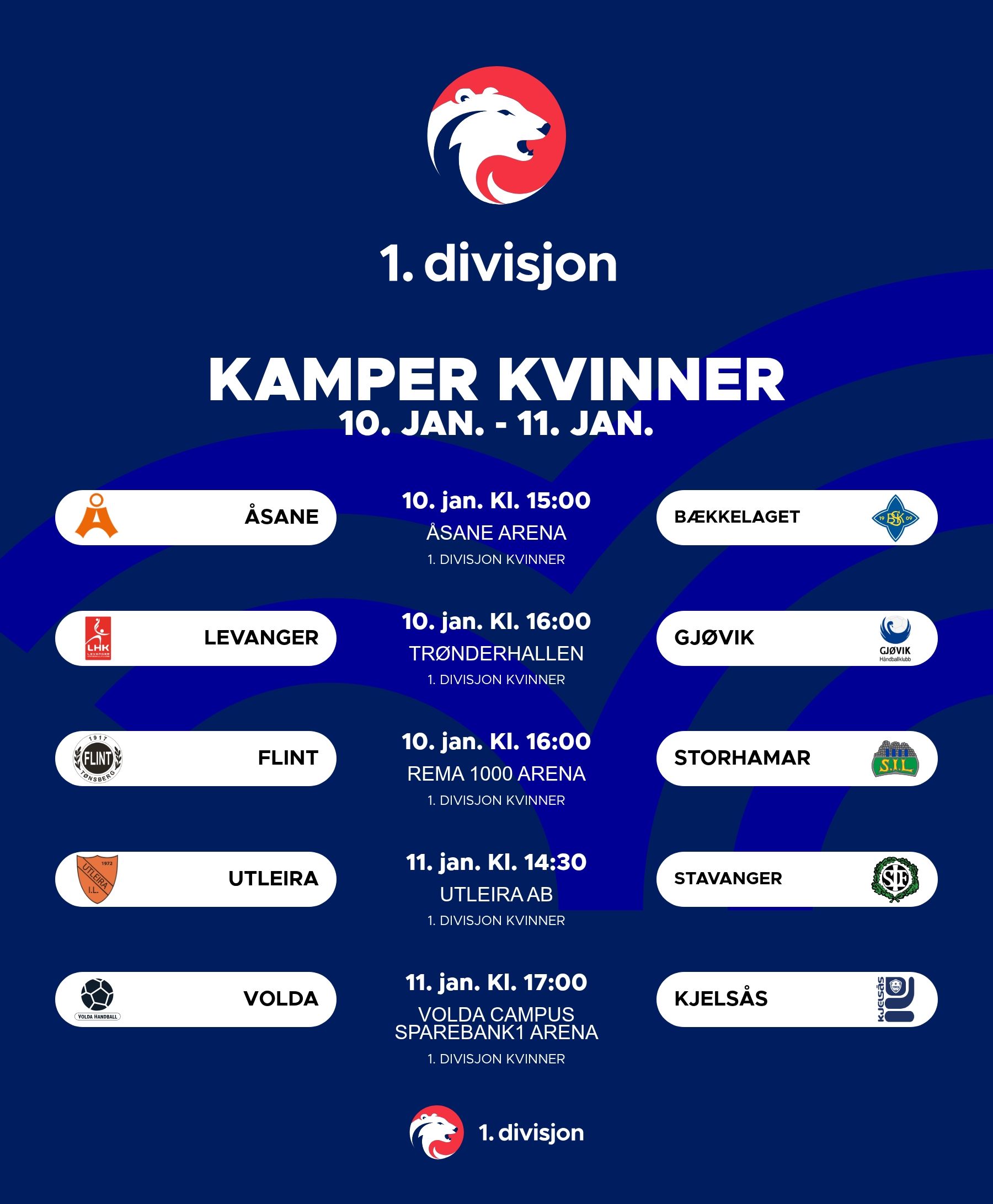Her finner du oversikten over hvor og når kampene i 1. divisjon kvinner spilles i helgen.