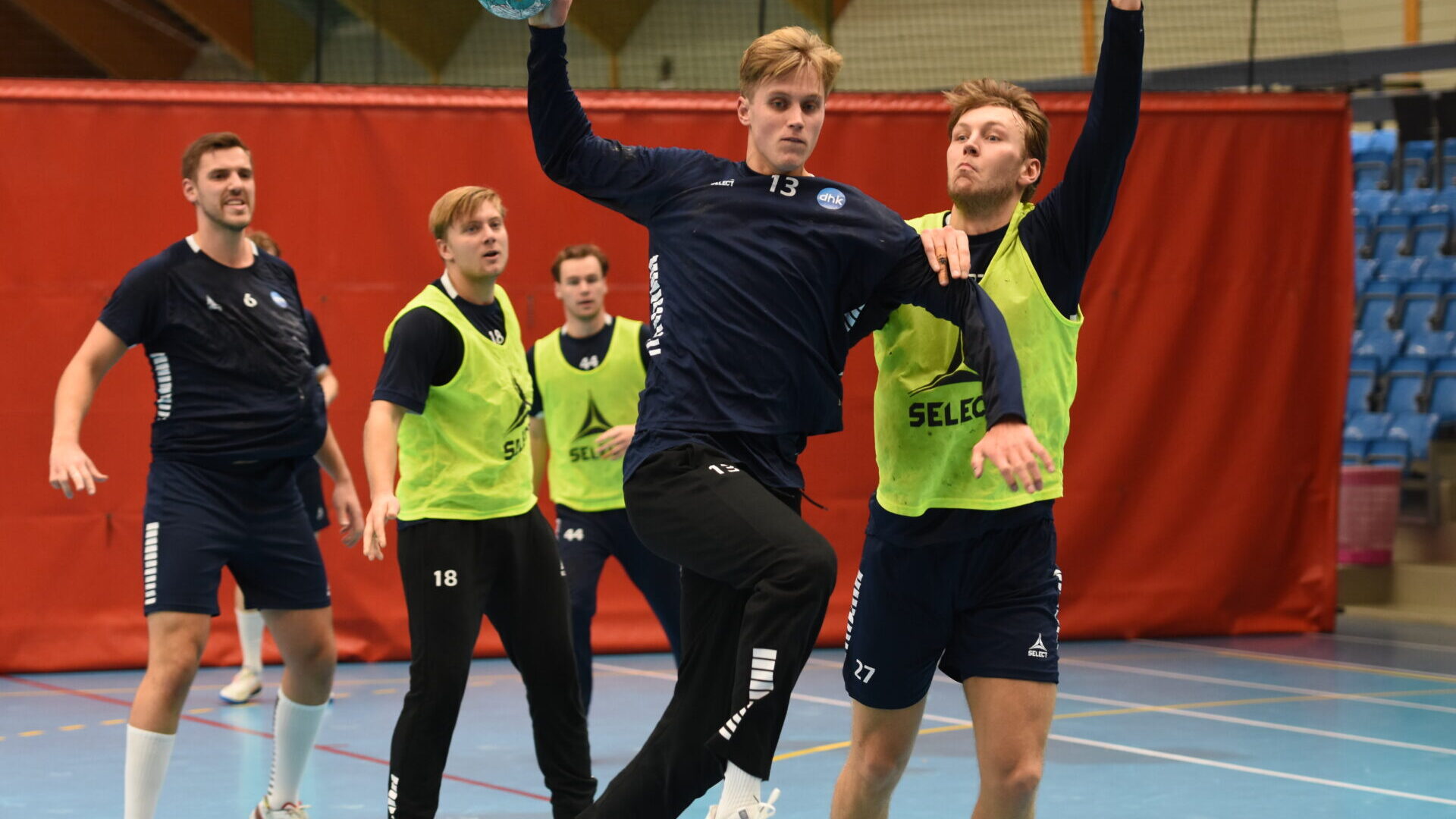 Plan A for å holde skaden i sjakk, og bli enda friskere, er at Hermann Gabriel Vildalen gjennomfører tre håndballtreninger i uken, i tillegg til kamp. Her fra en av treningene denne uken.