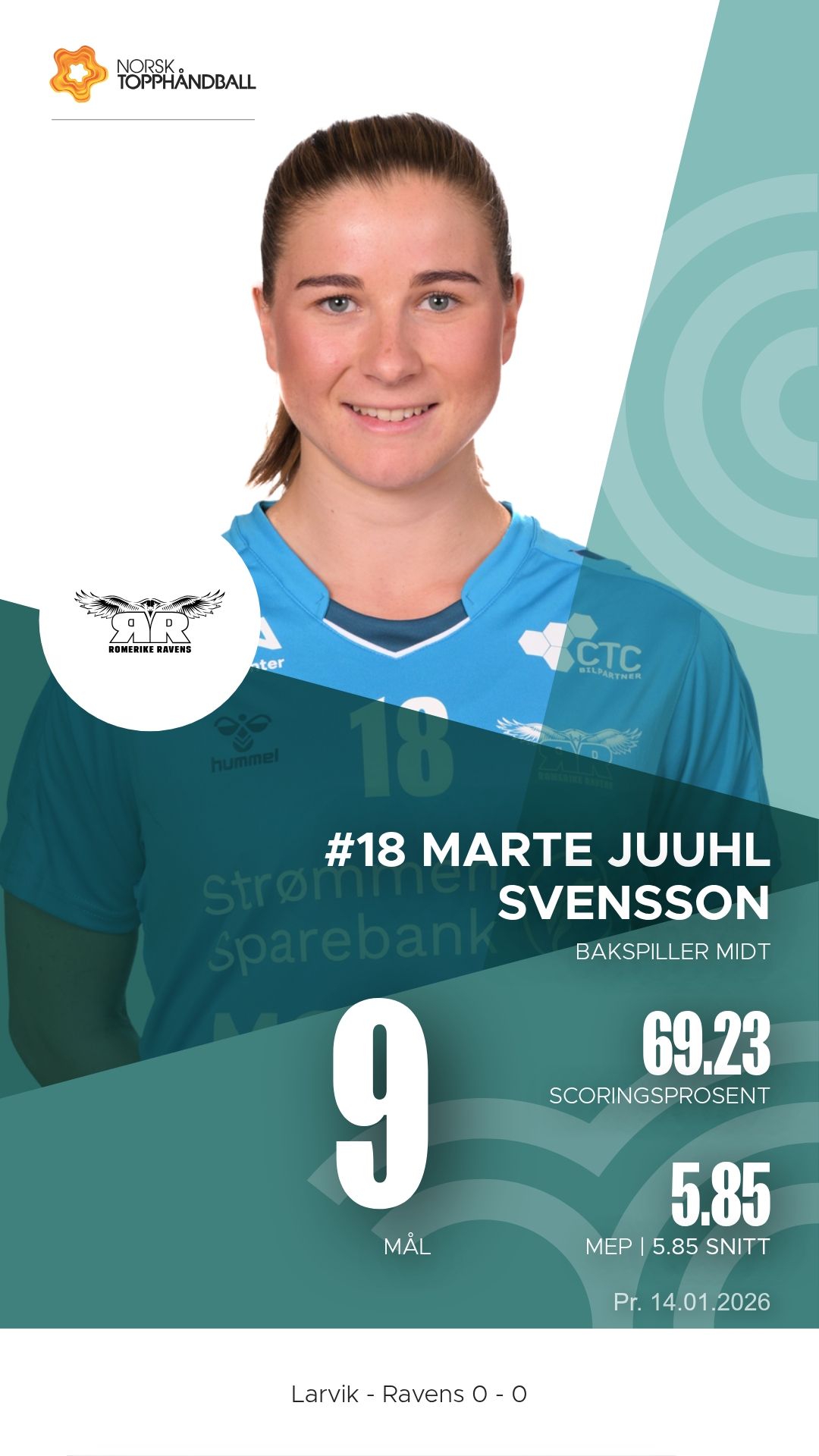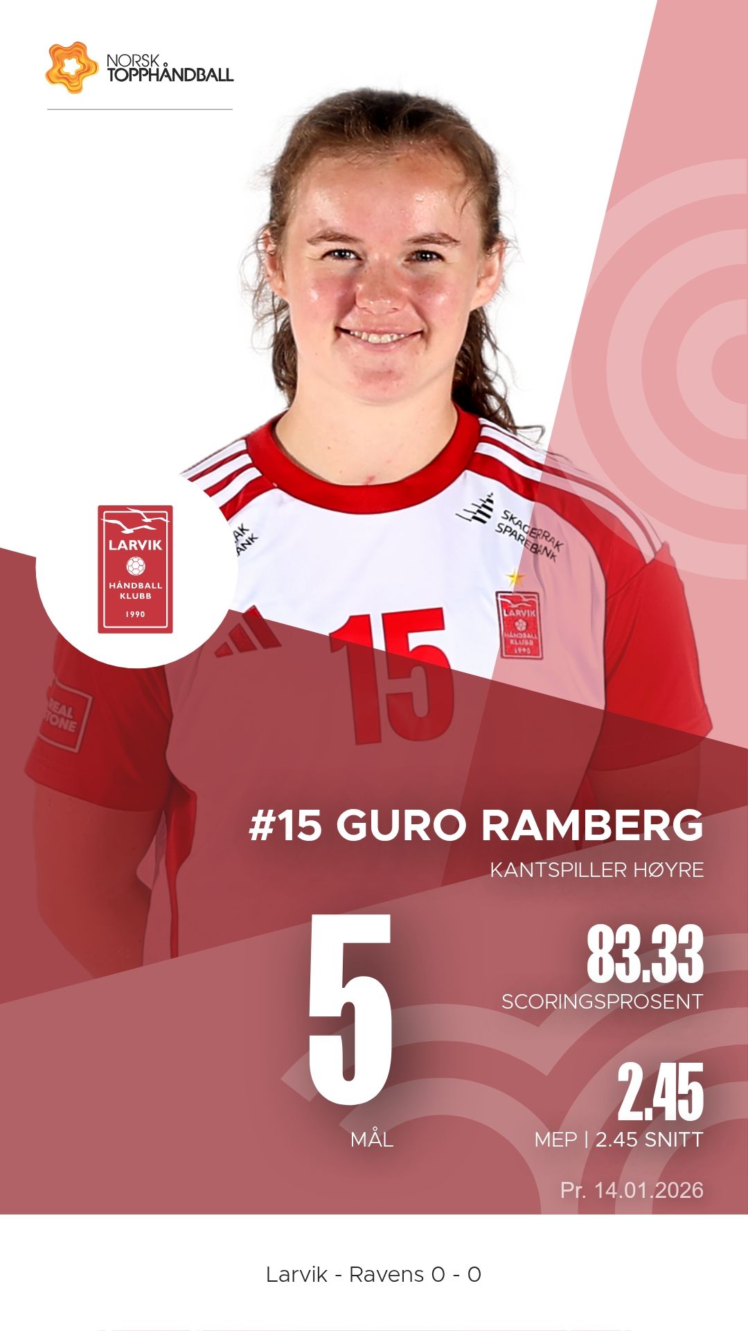 Guro Ramberg rundet 600 scoringer i Larvik-drakta mot ravnene fra Romerike.