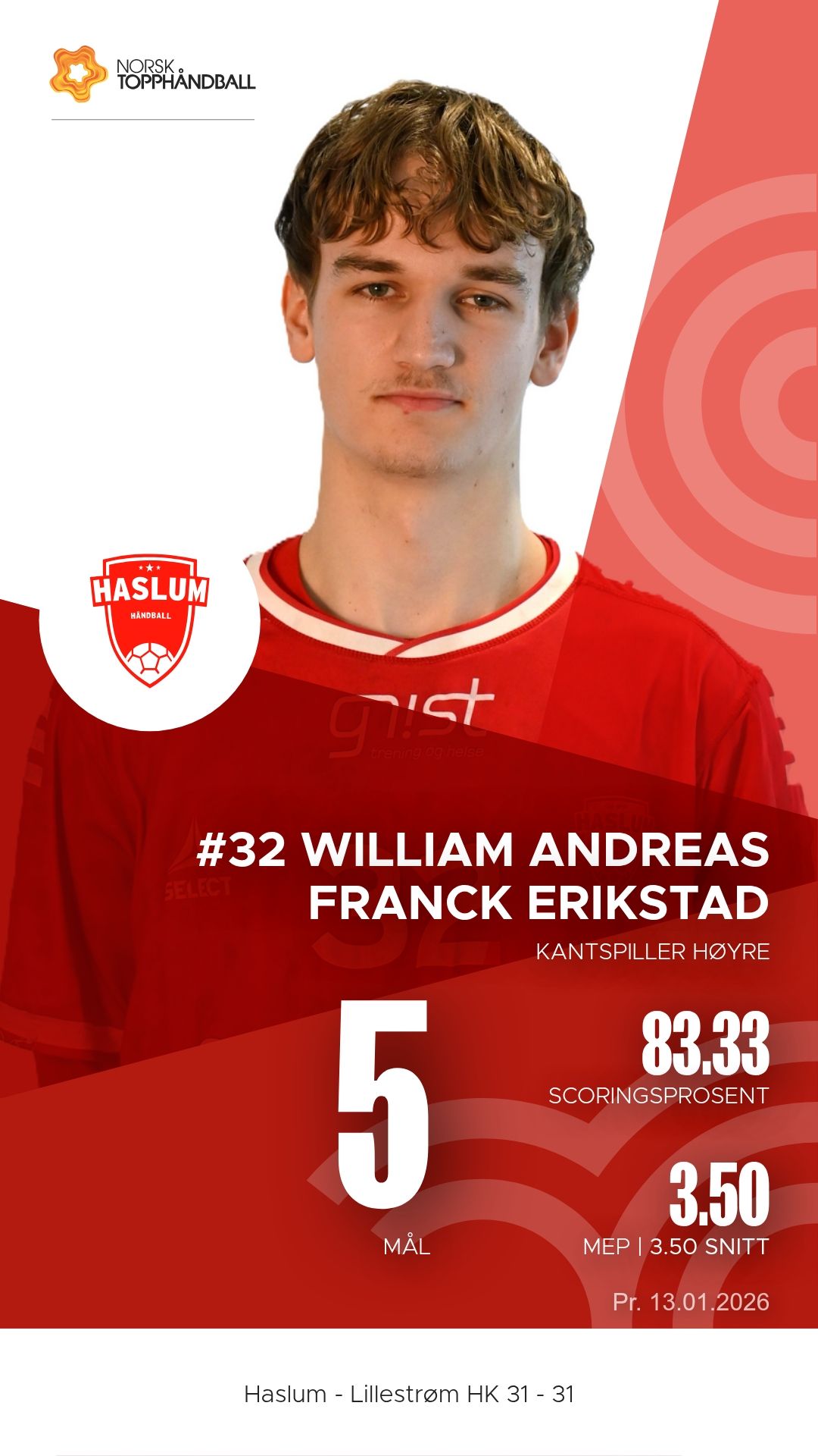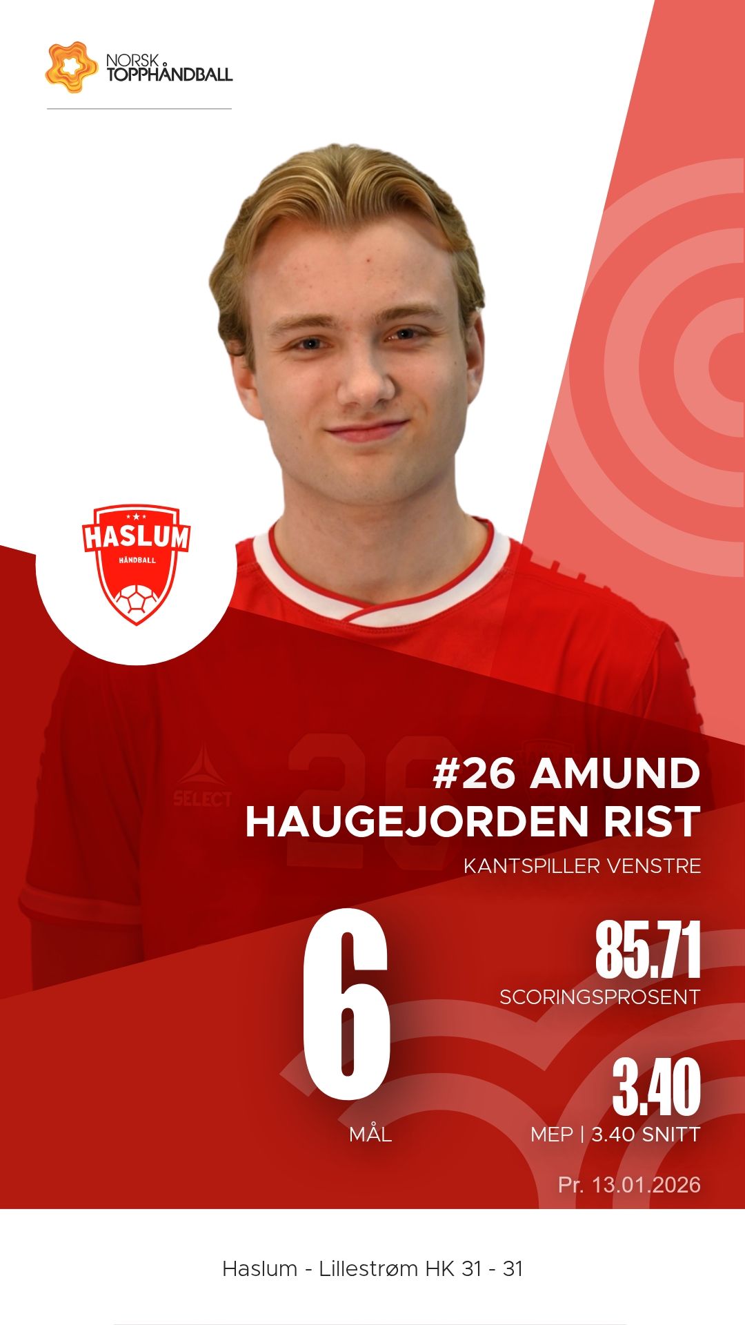 Haslum Håndballklubb og Lillestrøm Håndballklubb delte poengene etter en intens kamp i Nadderud Arena onsdag 13. januar 2026. Oppgjøret i 1. divisjon endte 31–31 etter at bortelaget fra Romerike leverte en solid borteprestasjon mot et Haslum-lag som lenge så ut til å ha kontroll.