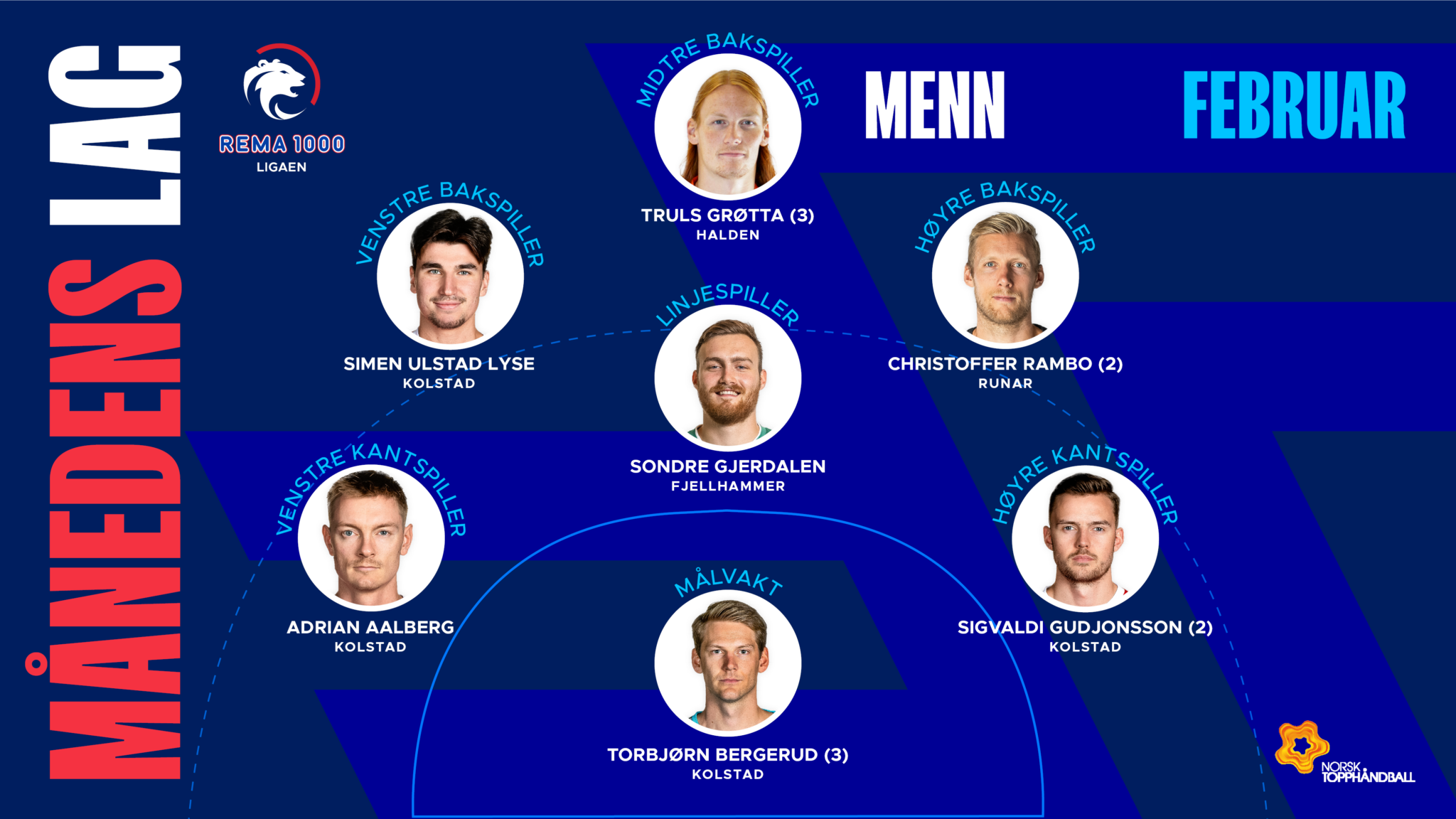 Laget er tatt ut basert på mottatt data fra kampene som er spilt i februar. (MEP – Mest effektive spiller)