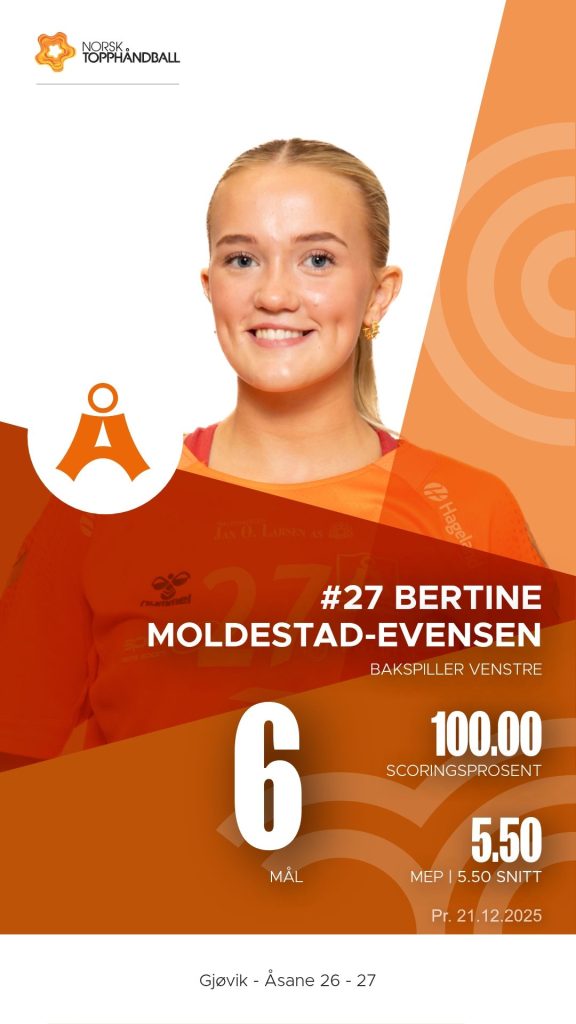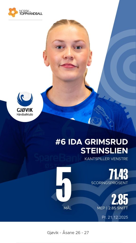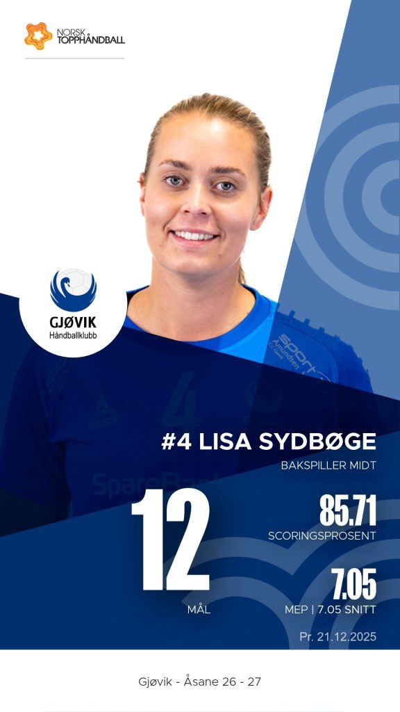 Lisa Sydbøge ble Gjøvik HKs toppscorer med 12 mål og ble kåret til banens beste. Selv om resultatet ikke ga uttelling, viste Gjøvik HK mot et topplag at laget er fullt konkurransedyktig på nivået.