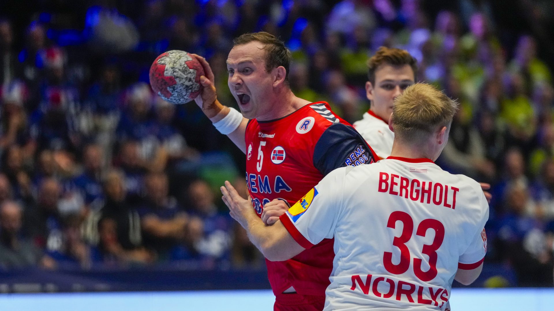 Danmark vant til slutt 38-33. Landslagssjef Jonas Wille fordelte spilletiden romslig på den norske troppen i kveldens kamp. Sagosen ble toppscorer for Norge med ni mål. For danskene ble Simon Pytlick mestscorende med samme antall.