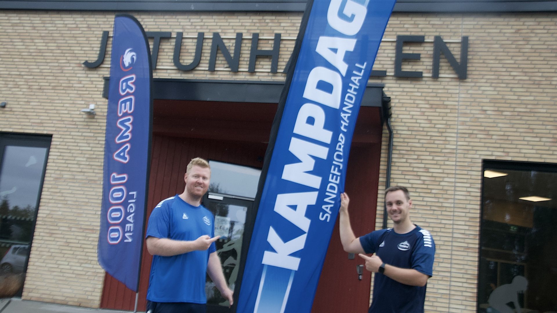 De har det travelt nå, Anders Holand Pettersen og Fredrik Svendsen i Sandefjord Håndball, for søndag skal de arrangere fest. Premierefest! Sandefjords første hjemmekamp i REMA1000-ligaen på tre og et halvt år. Gjett om de gleder seg!