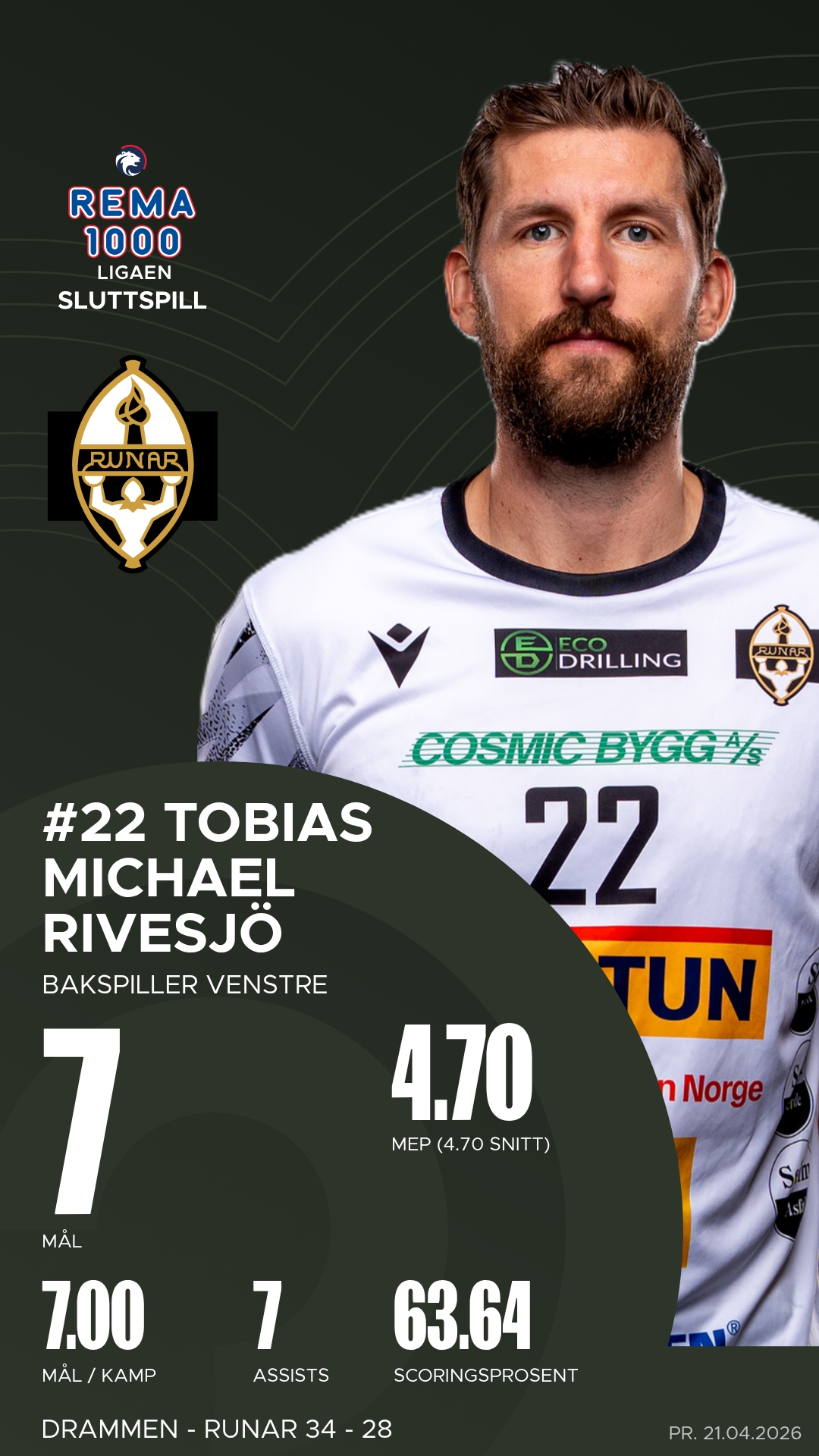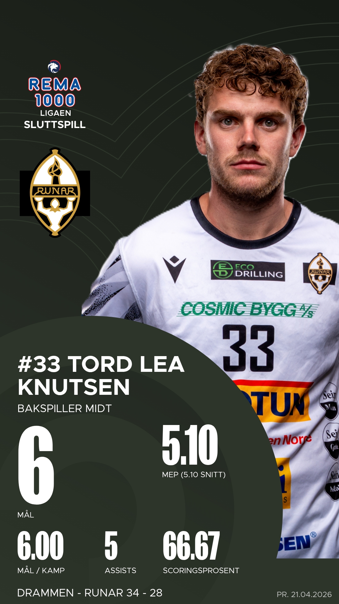 Drammen kommer med selvtillit, men de vet at Runar på hjemmebane er en helt annen utfordring. Med profiler som Rambo, Rivesjö og Knutsen i form, og et publikum som pisker laget framover, kan dette bli kvelden der Runar virkelig viser hva som bor i dem. To lag med stolte tradisjoner, to ulike stiler, og én felles ambisjon: å ta et steg nærmere sluttspilldrømmen. Alt ligger til rette for en håndballkveld som vil sette spor.