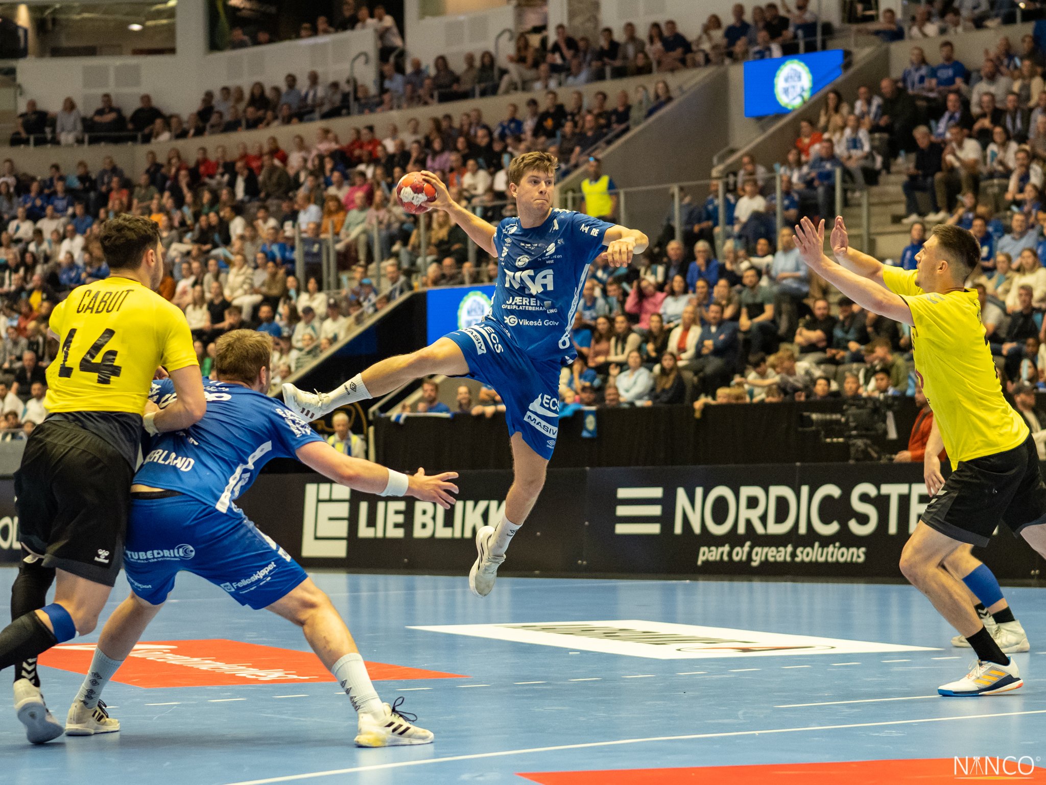 Og så kom krigen i Ukraina og suspensjon av motstander SKA Minsk. Det betydde at Nærbø var videre til semifinalen. Og det ble en helnorsk, og utrolig spennende affære. Drammen vant det første oppgjøret med tre mål. I returoppgjøret måtte Nærbø vinne med minst fire mål. Etter ordinær tid sto akkurat de samme sifrene på tavla i som det gjorde i Drammenshallen uken før – 30-27. Da bar det direkte ut i straffekonkurranse. Den vant Nærbø og sluttresultatet ble 35-31. Og Nærbø var klare for finalen i sin debut i EHF European Cup.