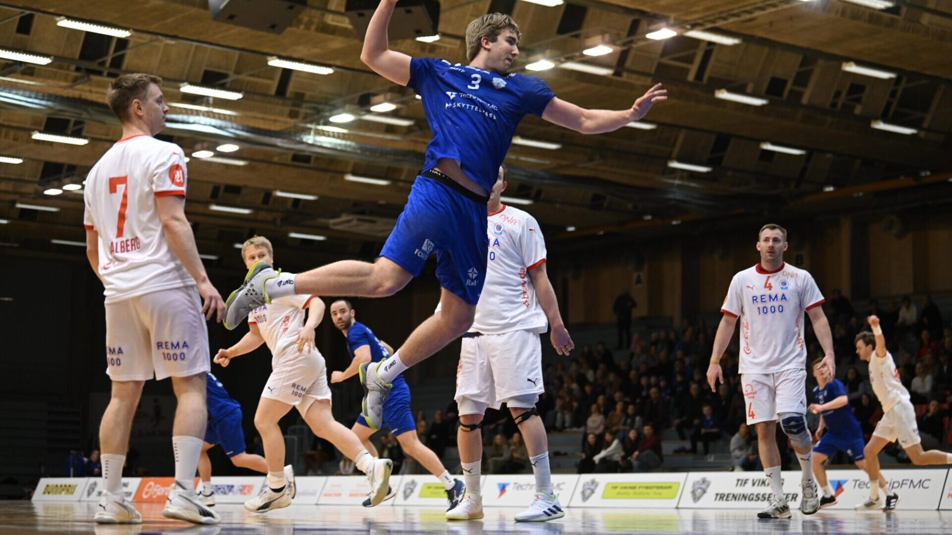 Simen Vatne Andersen fikk først ordentlig med spilletid i den siste halvdelen av sesongen, og ble blant annet lagets bestemann og toppscorer med syv mål da laget gjestet Drammenshallen i slutten av februar. Her fra en kamp mot Kristiansand. (Instagramfoto: Runes_Haandballbilder)