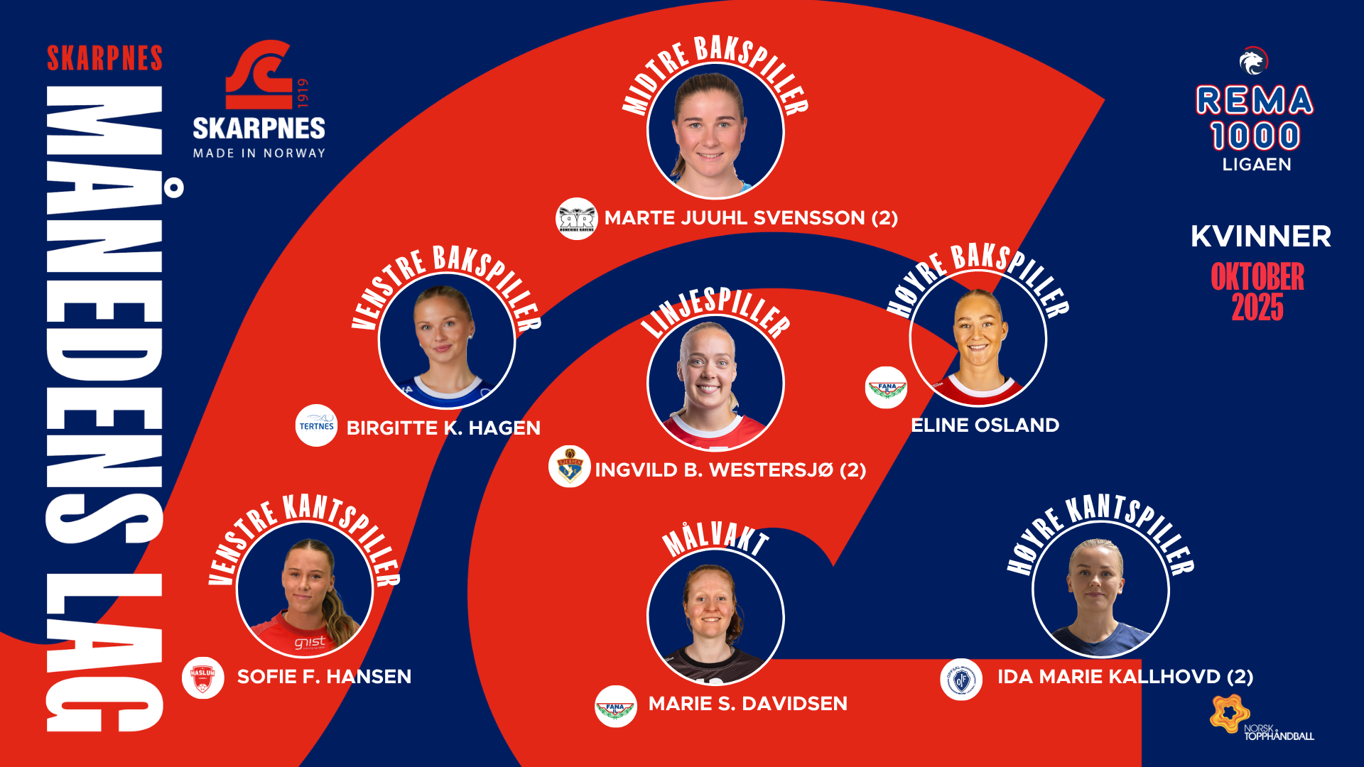Spillerne som imponerte i oktober: Her er Skarpnes Månedens Lag – Norsk Topphåndball