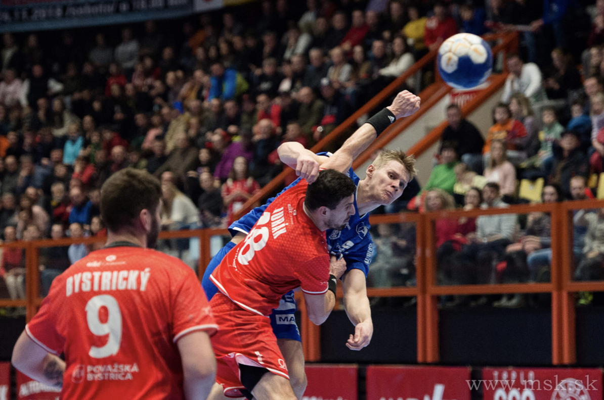 MŠK var ikke interessert i å gi fra seg ledelsen, de holdt seg ett og to mål foran før Torger Edland igjen var på farten og utlignet til 14-14 før han førte Nærbø i ledelsen 14-15. I sin jakt på å temme unge Edland brukte hjemmelaget ulovlige midler i forsvar og måtte se sin venstreback Ivan Bystrický bli sendt på tribunen med direkte rødt kort i slutten av første omgang.