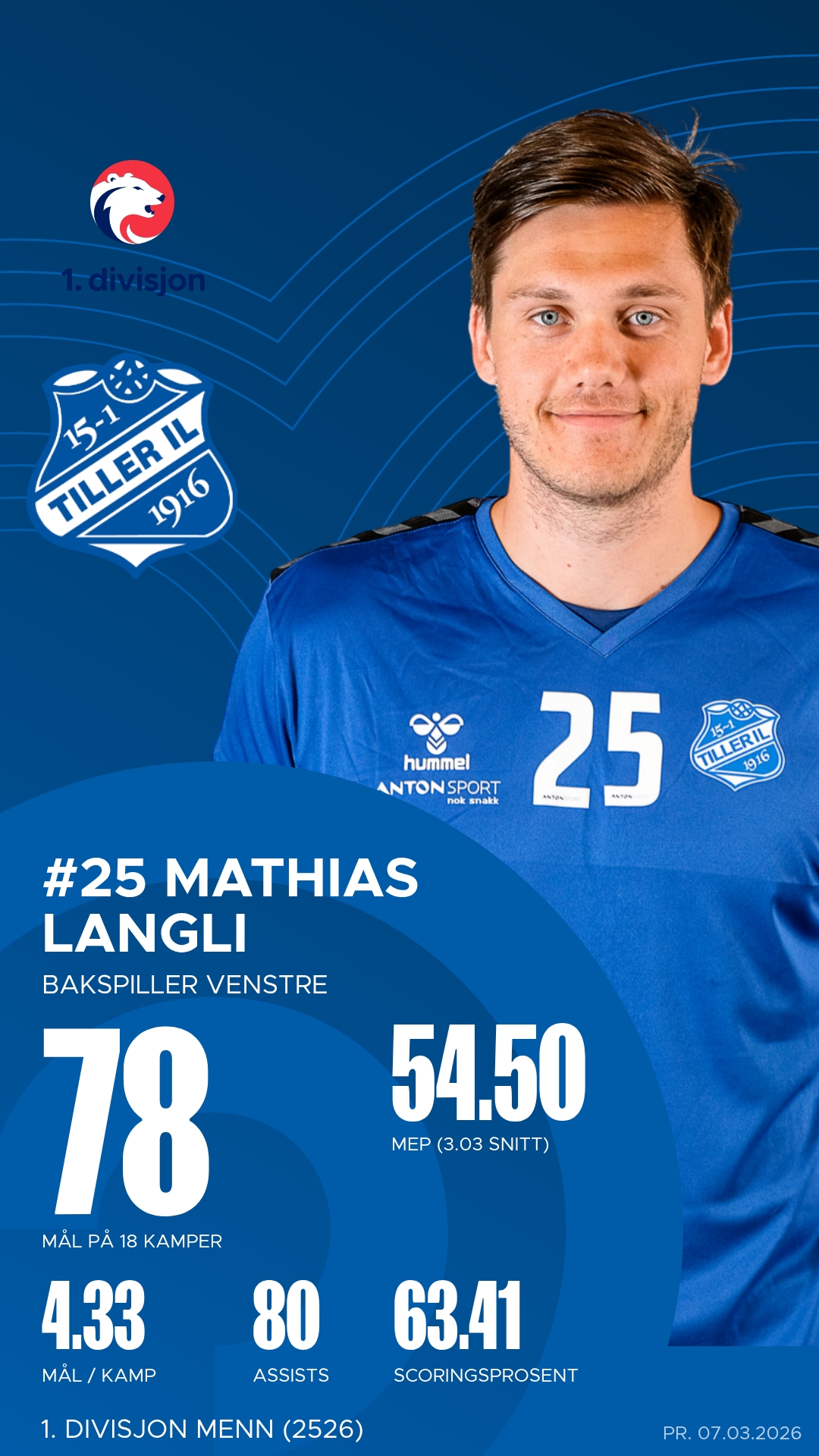 Tiller stiller med flere profiler i storform. Erlend Schjølberg Ressem (#27) har vært lagets fremste målscorer denne sesongen med over hundre nettkjenninger, og hans kraftfulle stegskudd fra bakspillerposisjon er et konstant uromoment for ethvert forsvar. Mathias Langli (#25) har et nesten ustoppelig driv fremover, med mange mål og assists. I tillegg har Stian Pettersen (#24) levert en rekke målgivende assists og styrt angrepsspillet med klokskap og ro. Keeper Kristoffer Falk Lund Almås (#66) var i det umulige hjørnet i forrige kamp borte mot Melhus, med 51% redningsprosent. I tillegg blir det spennende å se igjen Andreas Phil Moser (#33), som debuterte med 7 mål borte mot Melhus.