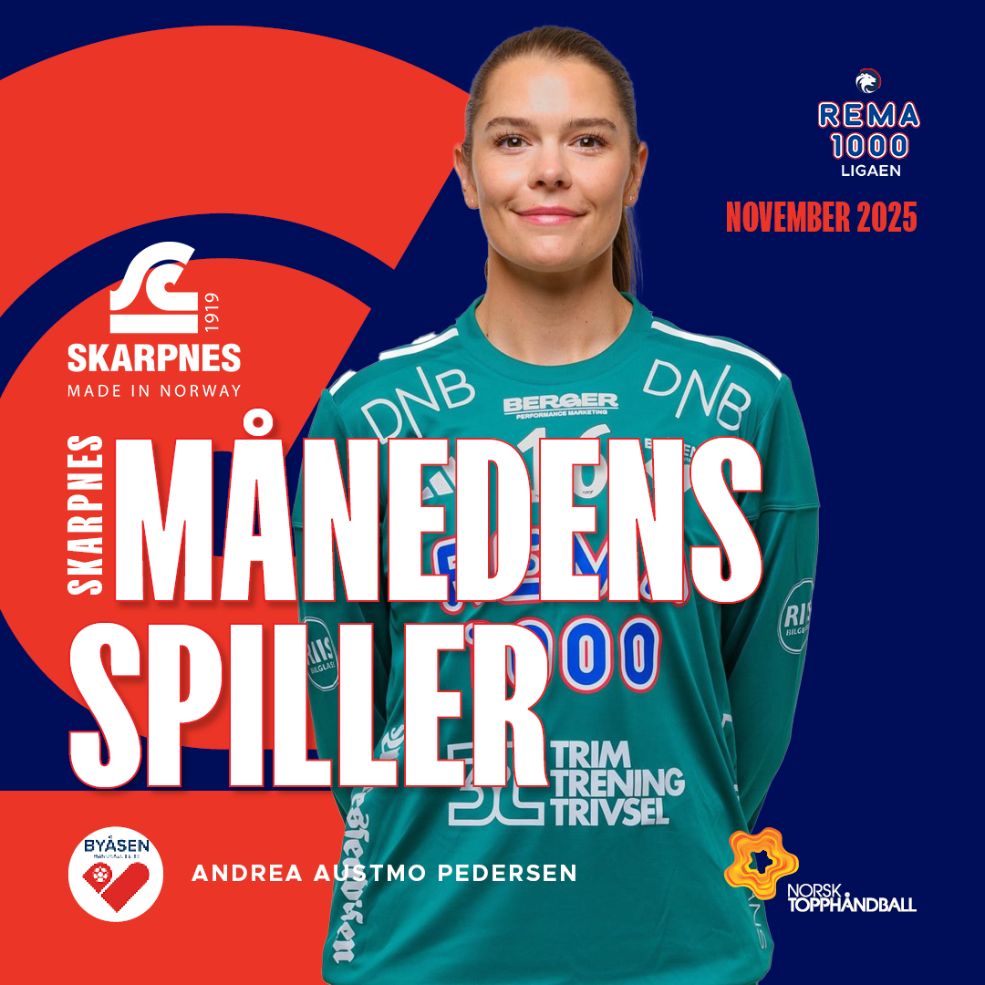 Byåsens målvakt Andrea Austmo Pederesen er kåret til Skarpnes Månedens Spiller i november i REMA 1000-ligaen.