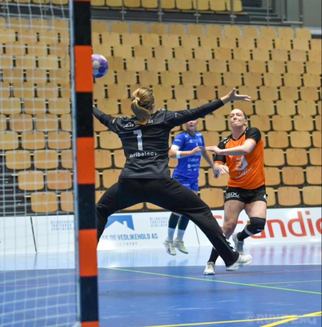 Karina Tjore hadde forrige sesong et snitt på 2.7 mål pr. kamp. Så langt har hun 23 scoringer fra høyrekanten med 68% uttelling. Det er 4.6 mål i snitt, som er betraktelig høyere enn i fjor.