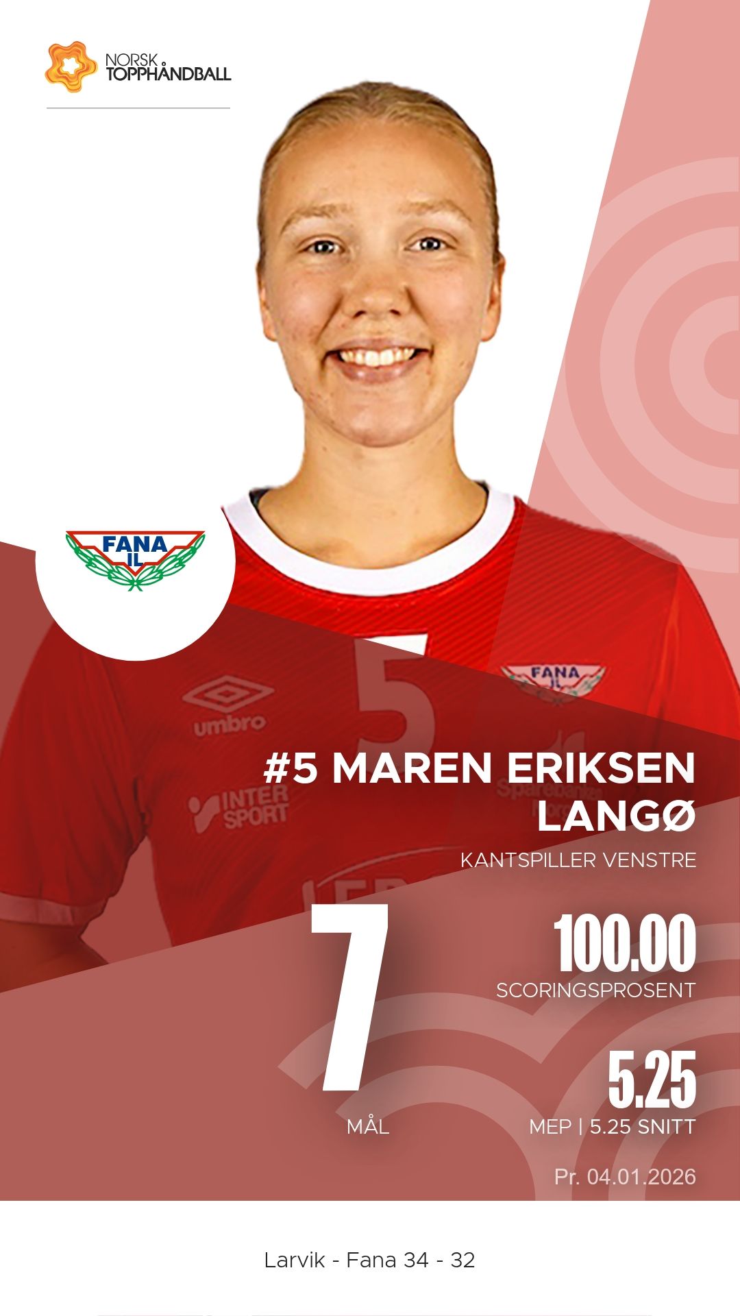 Med denne seieren befestet Larvik sin posisjon på toppen av REMA 1000-ligaen. Etter ti kamper står de med ni seire og én uavgjort. Fana ligger foreløpig på sjuendeplass med ni poeng og må kjempe hardt for å sikre seg en plass blant de åtte beste og dermed adgang til sluttspillet.