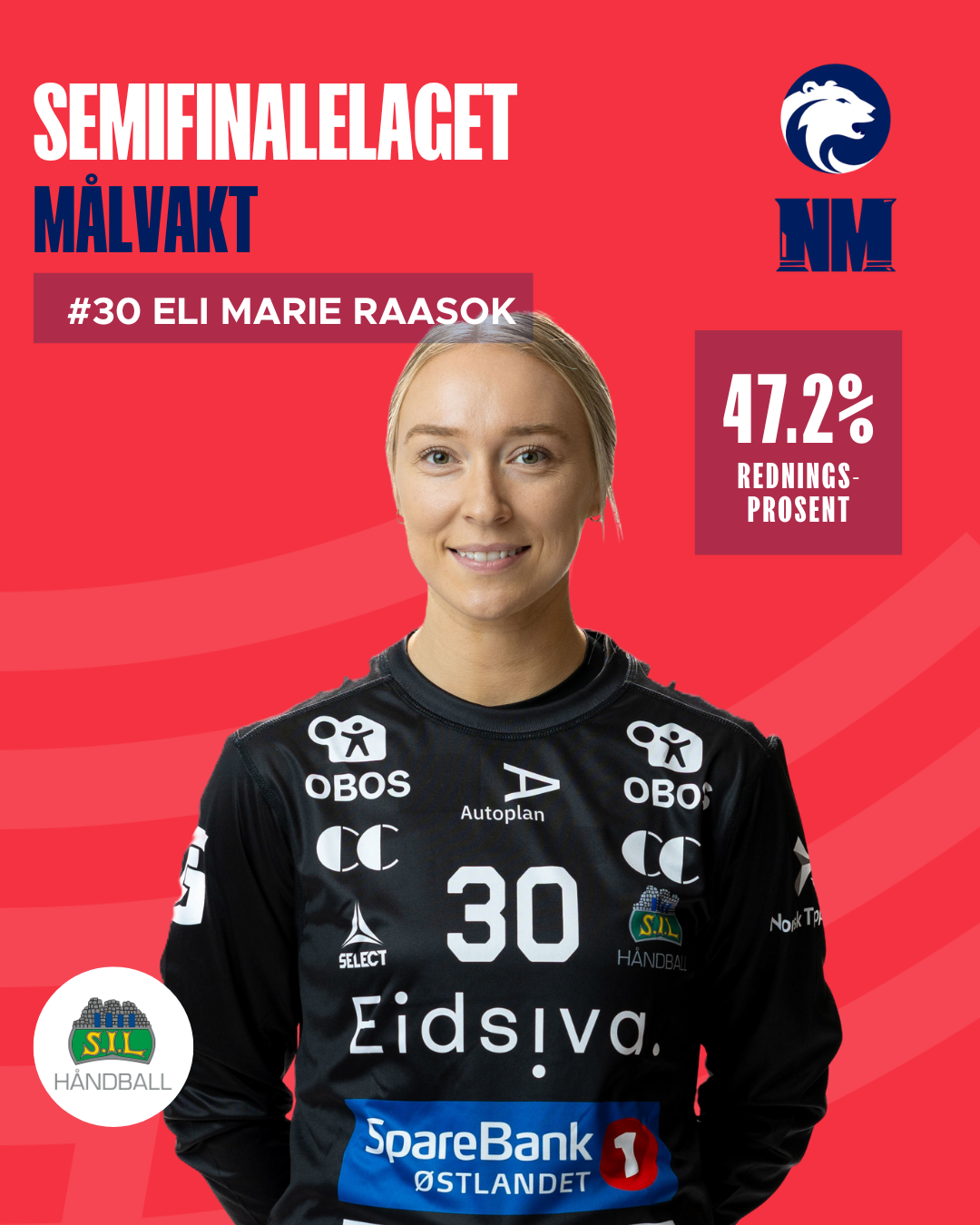 Raasok leverte en svært solid kamp mellom stengene med 17 redninger på 36 skudd og en redningsprosent på 47,2. Med MEP 7,1 var hun en nøkkelspiller bak Storhamars semifinaleinnsats.