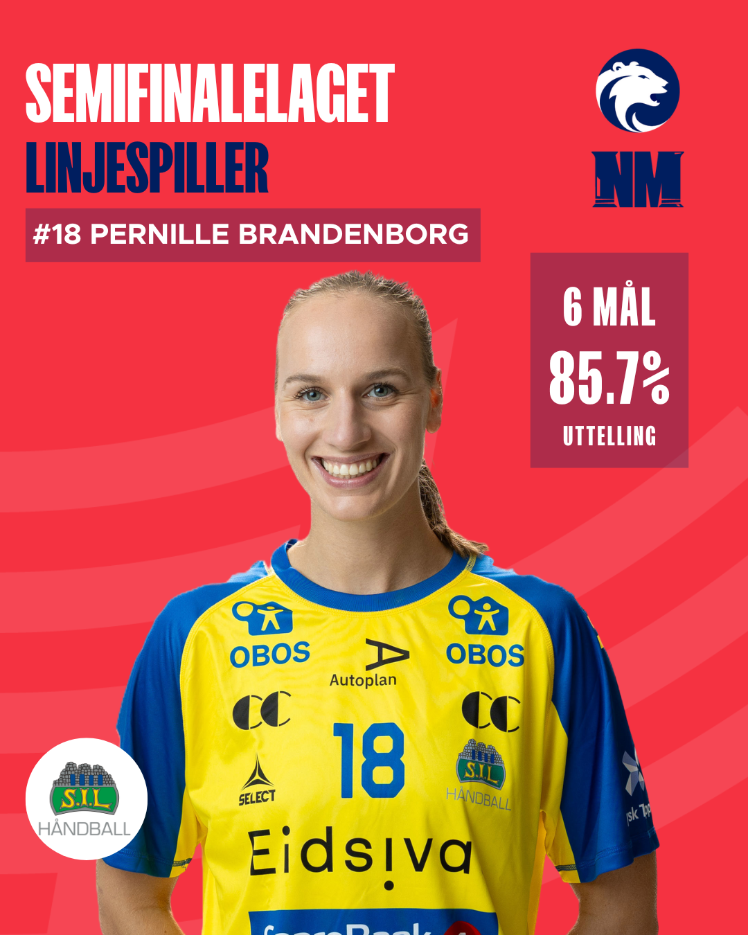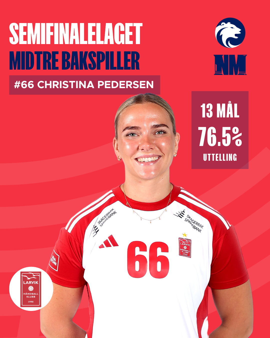 Pedersen ledet an i Larviks angrepsspill med 13 mål og 76,5 % uttelling, i tillegg til 2 assists. Med MEP på 8,5 ble hun en av semifinalens mest markante spillere.