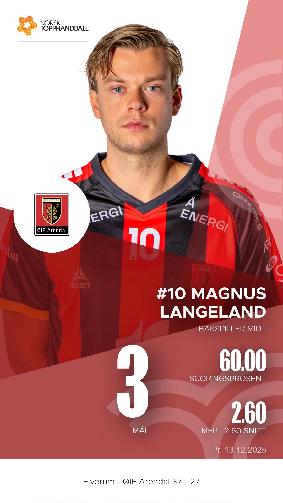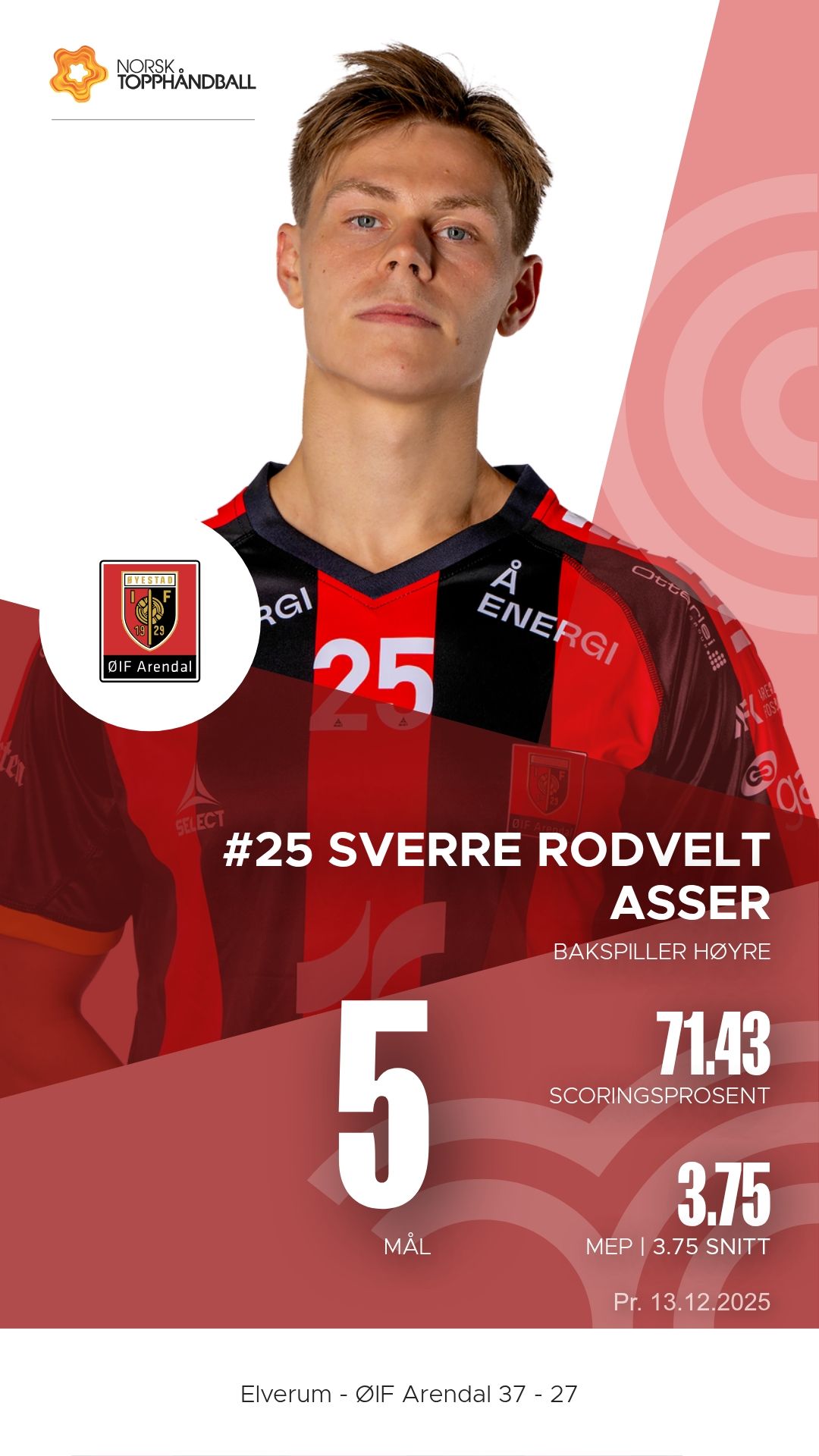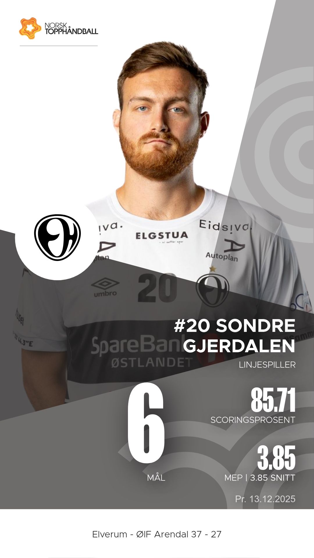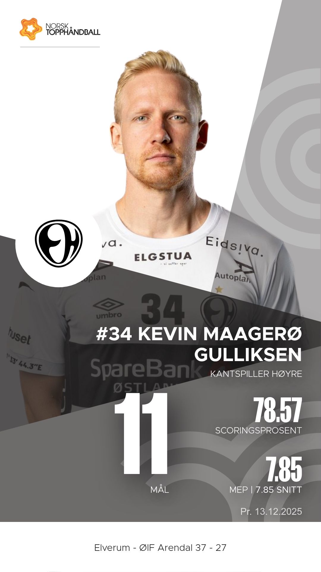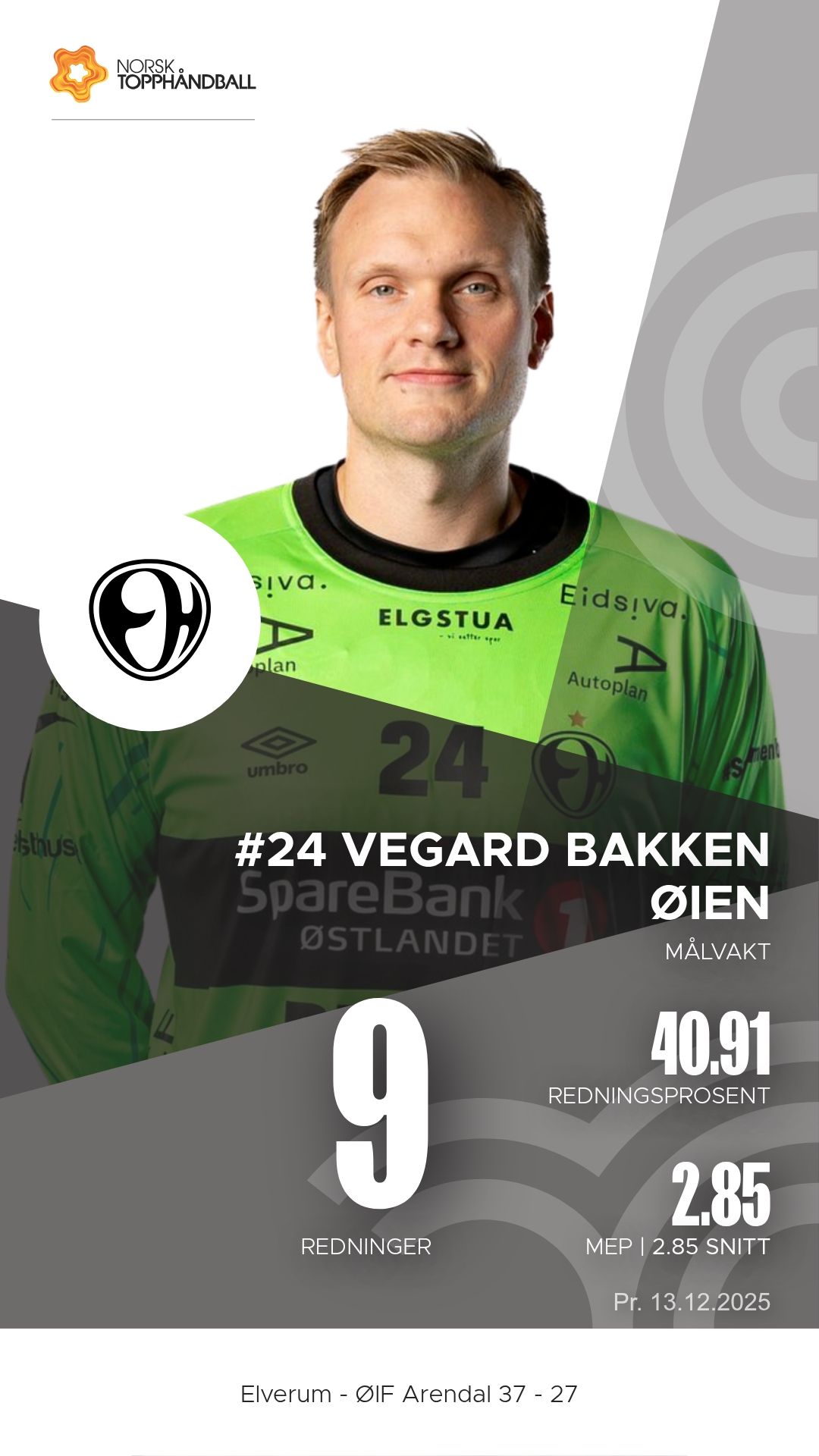 Elverum tok en ny solid hjemmeseier da ØIF Arendal Elite kom på besøk til Terningen Arena lørdag 13. desember. Hjemmelaget vant komfortabelt 37–27 etter å ha ledet 21–15 til pause i en kamp der forskjellen i tempo, struktur og bredde ble tydelig utover i oppgjøret.