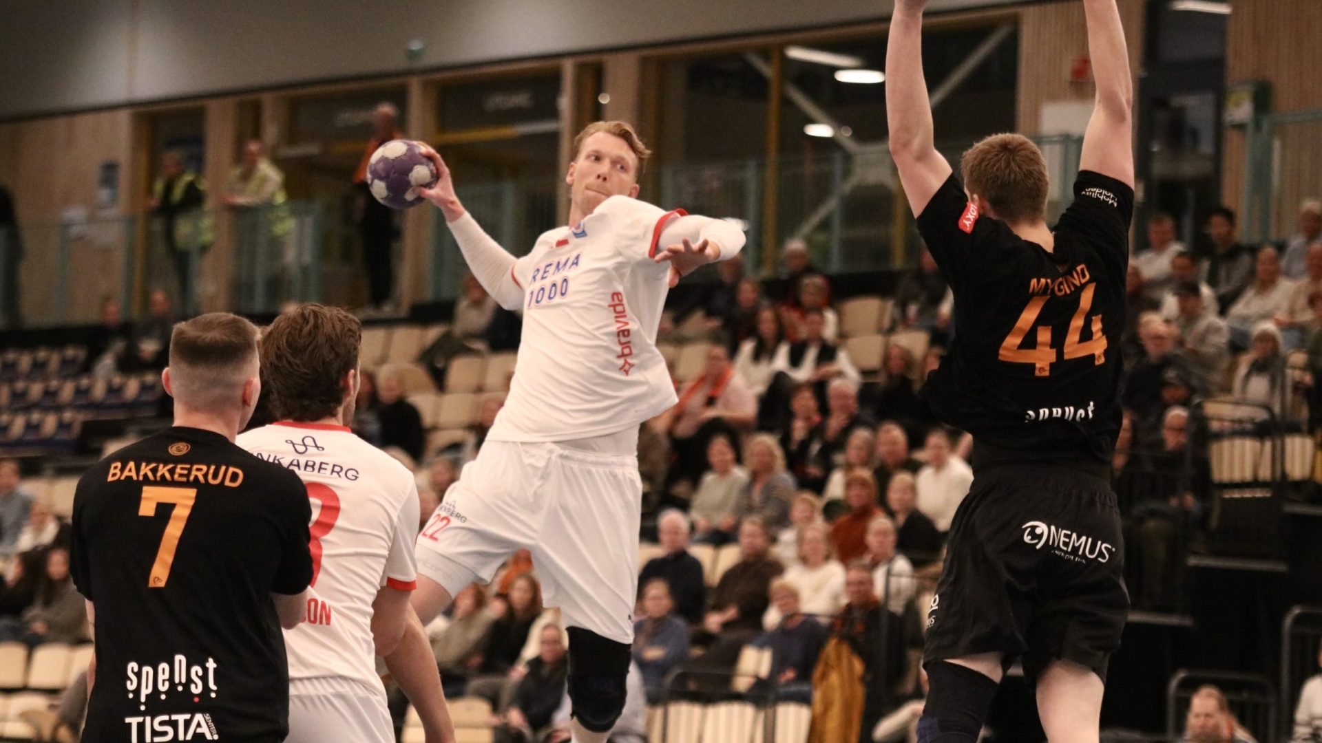 I Halden Arena var det hjemmelaget som satt i førersetet – helt til 7-7. Så overtok vi, men med en poengsulten motstander glefsende like bak oss. Ikke minst bidro skarpskytter Tobias Mygind for det med sine imponerende 12 scoringer på 14 skudd.