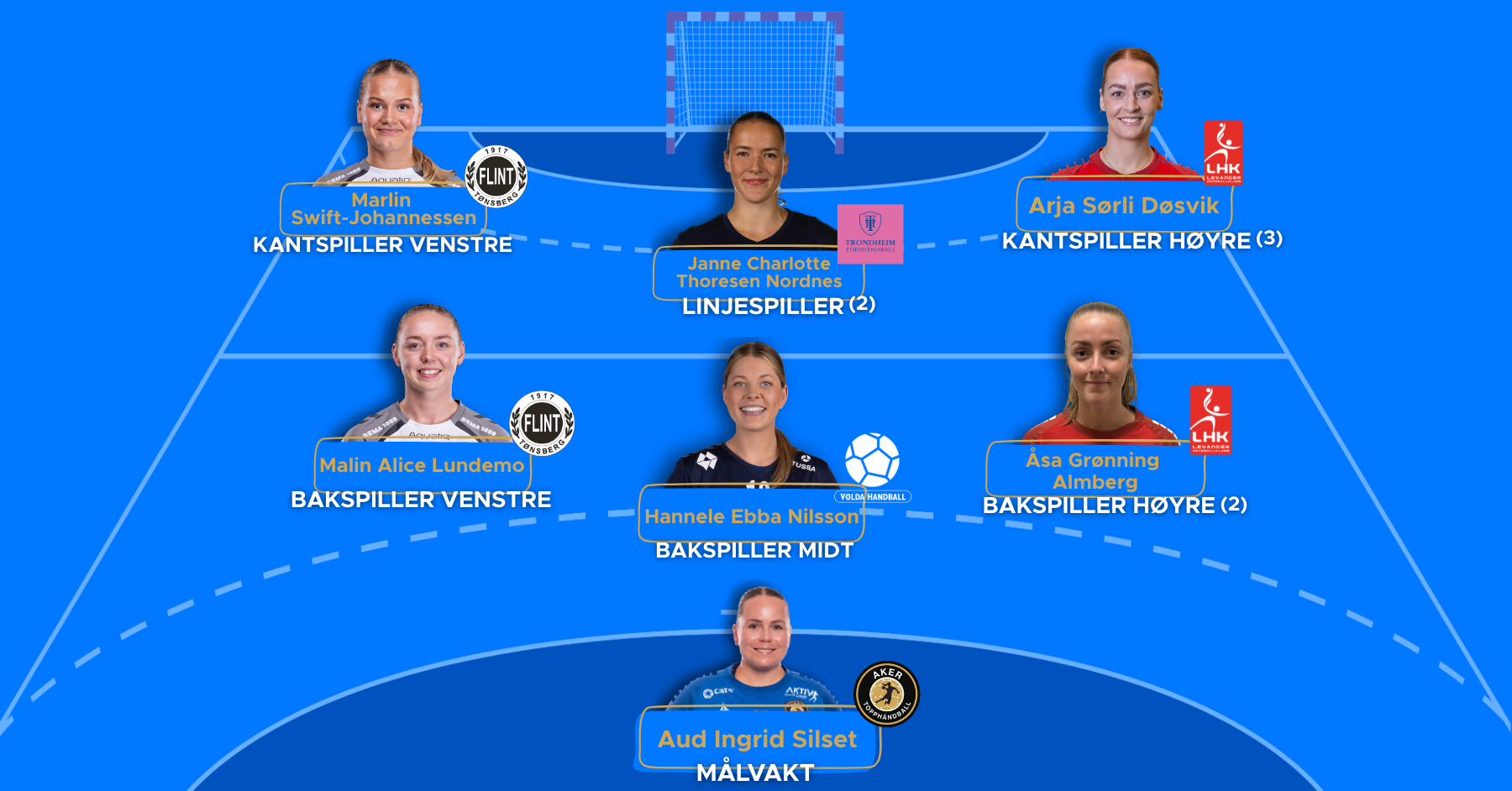Nordnes fortsetter storspillet fra oktober og har vist høy effektivitet inne på linja. Hun står med 18 scoringer på 90 % uttelling og 6 mål i snitt per kamp.