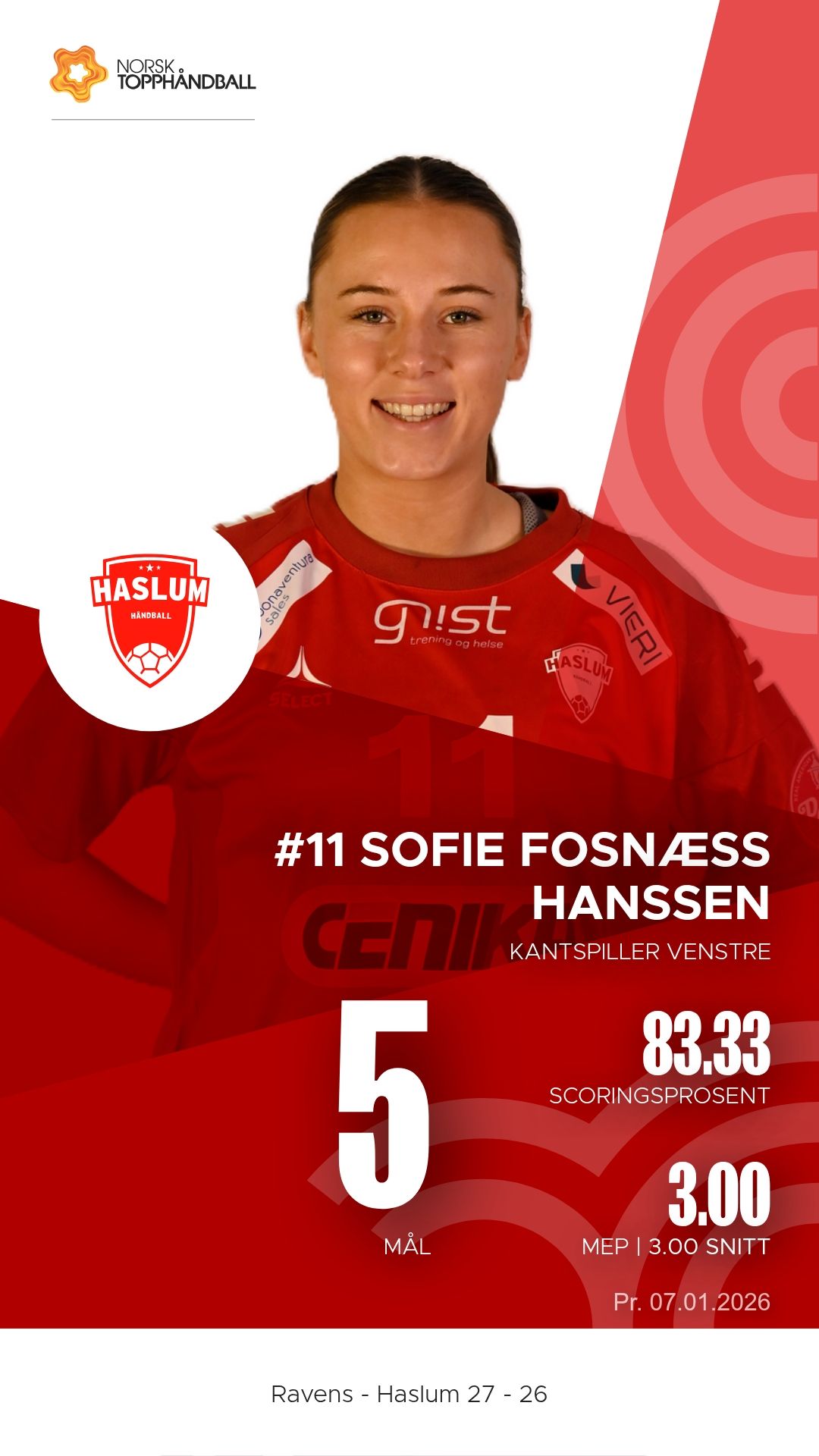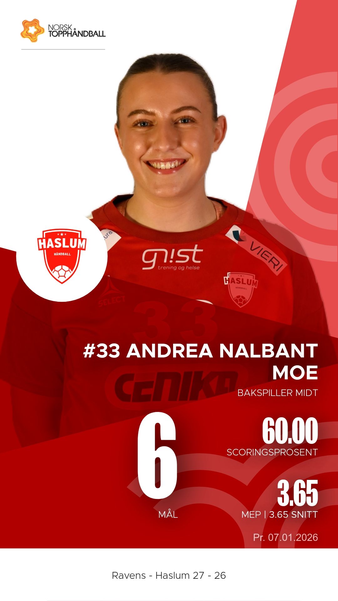 For Haslum var Andrea Nalbant Moe og Sofie Fosnæss Hanssen de mest toneangivende. Moe endte med seks mål og flere assists, mens Hanssen var sikker fra venstrekanten. Bakspiller Veriana Veliqi bidro med fire mål og gode pasninger, men det holdt ikke helt inn.
