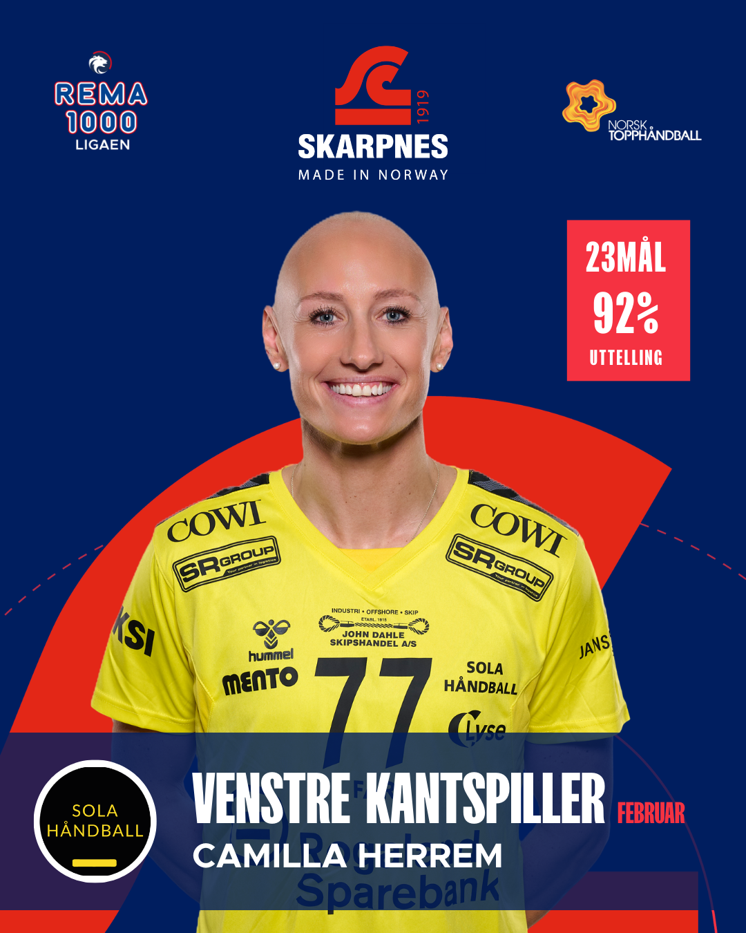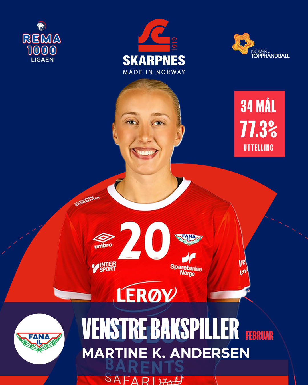 Kåringen av Skarpnes Månedens Lag er basert på statistikk fra kampene som er spilt i februar. Kun spillere som har deltatt i minimum tre kamper i løpet av måneden er vurdert. Februar har bydd på sterke enkeltprestasjoner, høy effektivitet og flere spillere som virkelig har tatt ansvar når det har stått og vippet. Her er månedens utvalgte i REMA 1000-ligaen for kvinner.