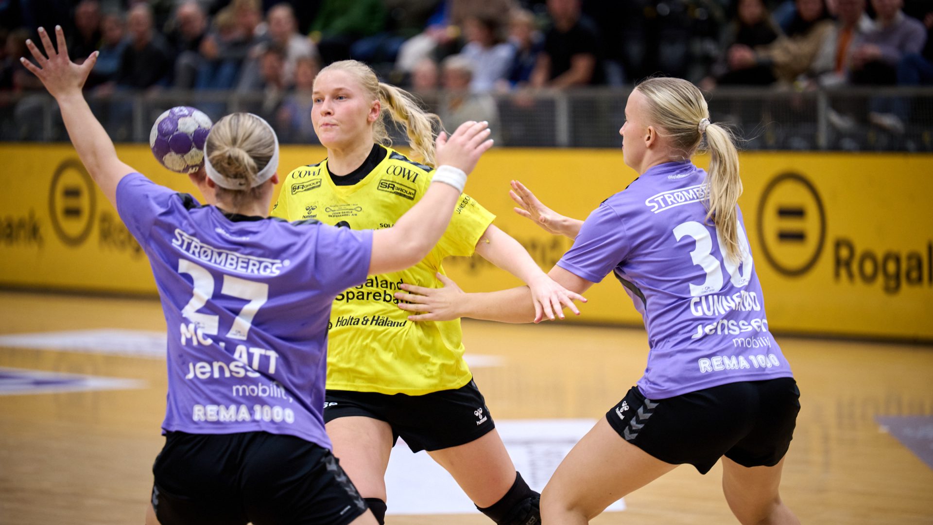 Ravens åpnet målprotokollen allerede etter ett minutt ved Marte Juuhl Svensson, men Sola svarte umiddelbart tolv sekunder senere med scoring fra Hanna Ræstad. Lagene fulgte hverandre tett i åpningsminuttene, og etter fem minutter sto det 4–4 på tavlen. Gradvis tok Sola et lite grep om kampen og opparbeidet seg en ledelse på to til tre mål. Etter 15 minutter viste stillingen 11–9, og denne differansen holdt seg ut omgangen. Til pause var jentene foran 20–17.