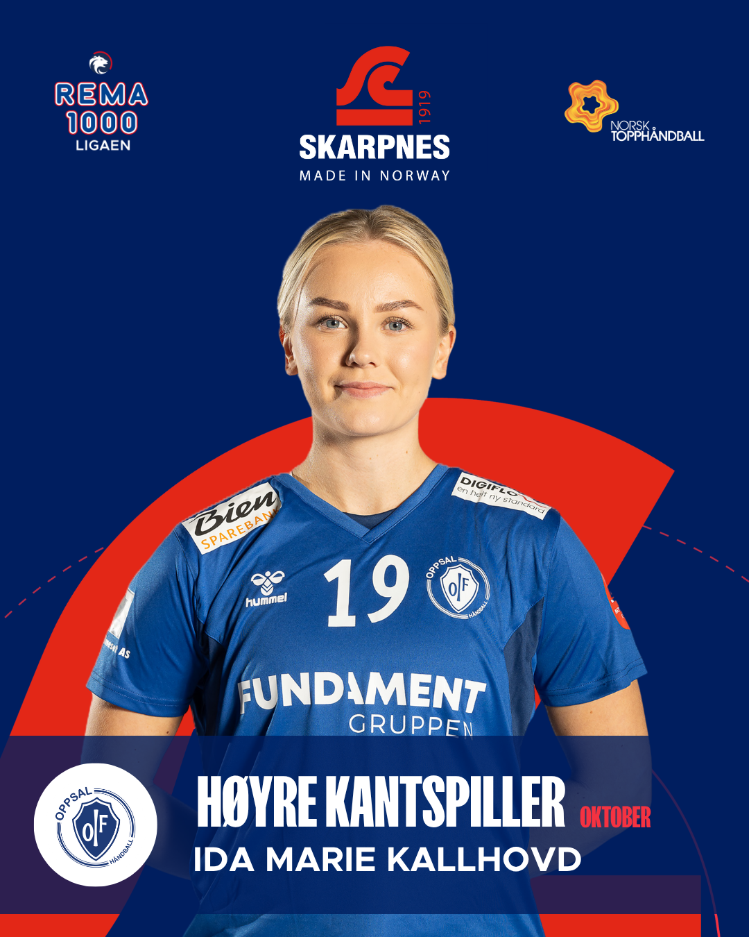 Kallhovd er en av månedens gjengangere, på Skarpnes-laget for andre måned på rad. Oppsal-kanten har scoret 20 mål, og med 76,9 % uttelling viser hun høy effektivitet. En spiller som virkelig har funnet flyten denne høsten.