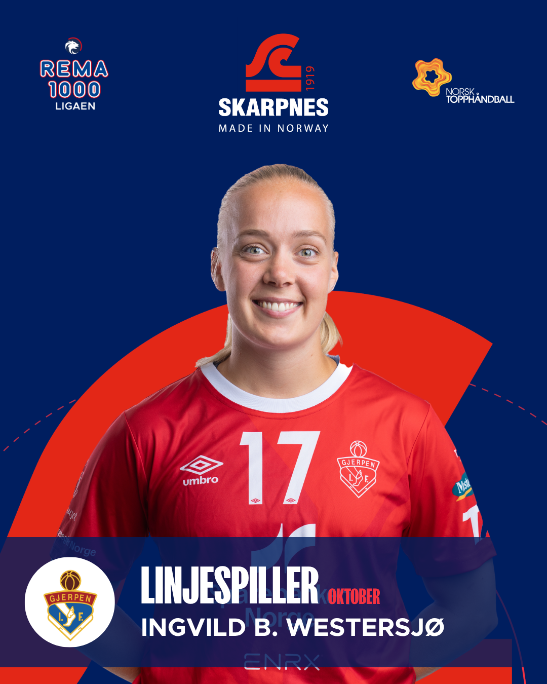 Westersjø har hatt en solid periode for Gjerpen og får også sin andre strake utnevnelse. Med 14 mål på tre kamper, 77,8 % uttelling og MEP 3,2 leverer hun både i duellspillet og foran mål. En bauta på linja for laget fra Skien.
