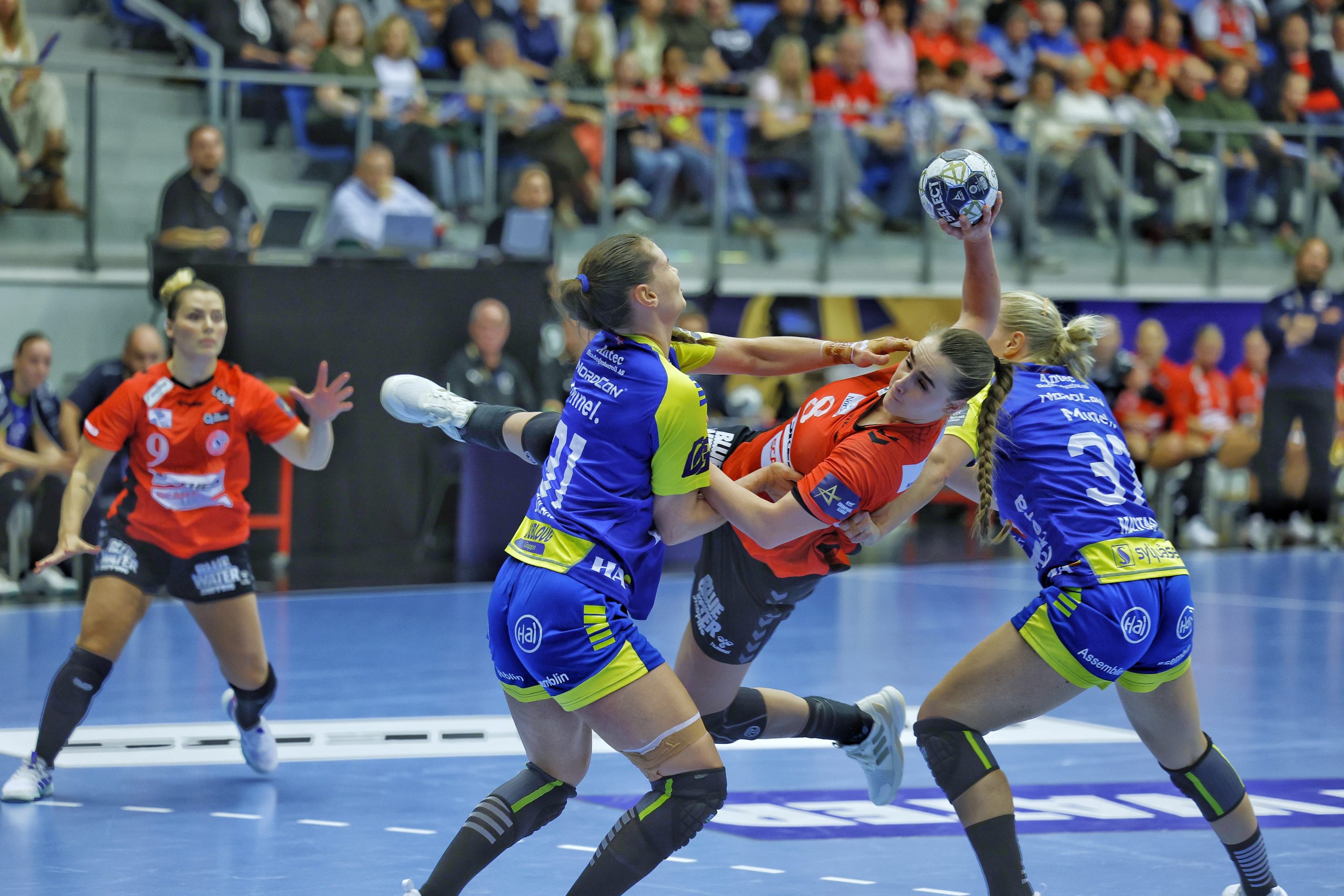 Et målvaktsbytte hos danskene og tre-fire stolpeskudd og et par solide redningner av Filter bakerst hos Esbjerg gjør at vi aldri kommer helt opp. Vi er på det nærmeste 3 mål bak i andre omgang, men danskene med Henny Reistad i spissen spiller godt og kontrollerer det hele inn.